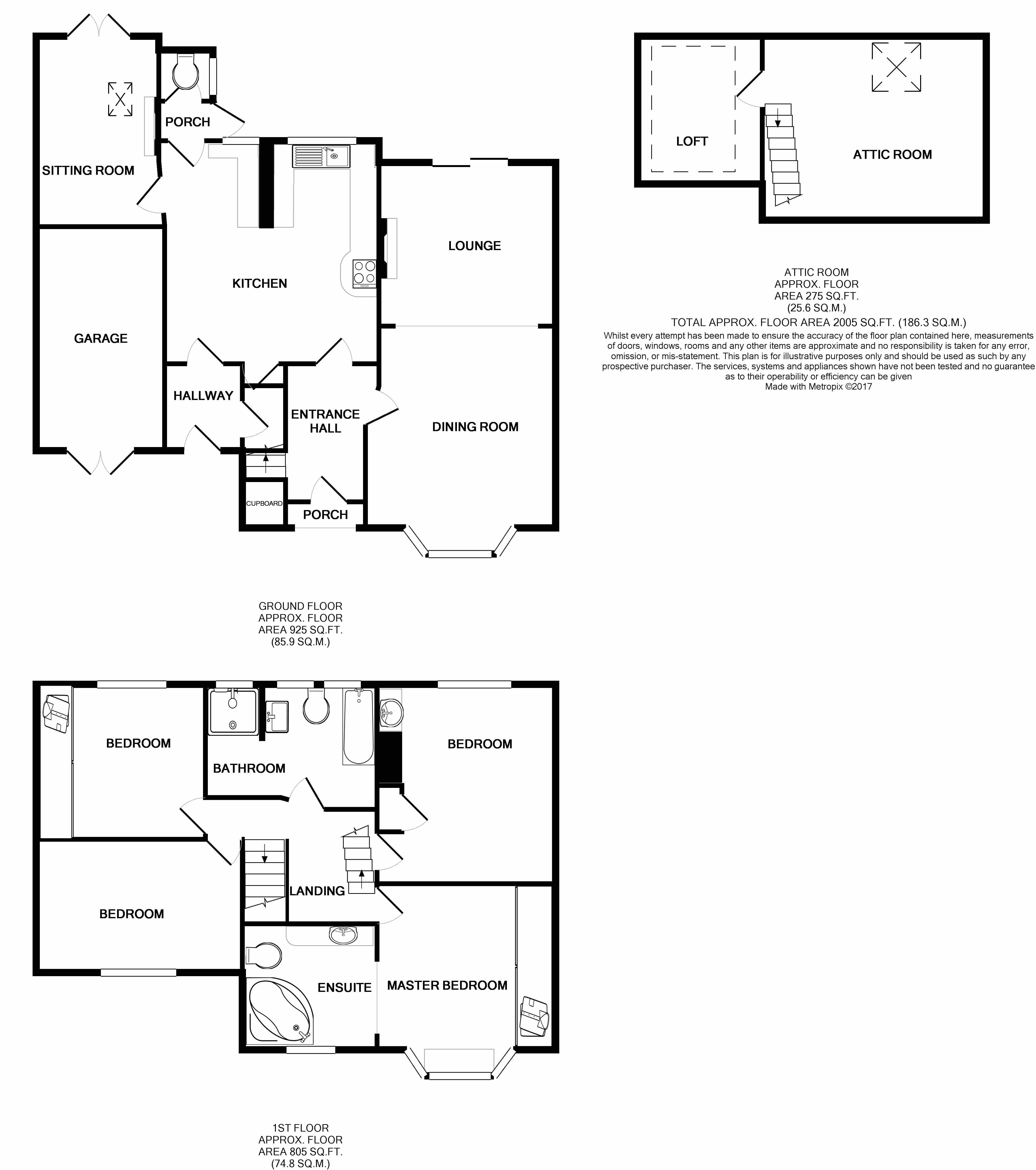 description Mature gardens and the driveway are to the front, the driveway can accommodate multiple vehicle's and leads to an integral garage. The main entrance porch leads into the hallway, with a cupboard at the foot of the stairs and access to the kitchen and lounge areas. The lounge through dining room sits to the right of the house with a feature bay window to the front and patio doors leading onto the enclosed mature garden and patio areas at the rear. The kitchen diner, with integrated hob and oven, look onto the rear garden and provide access to the Sitting room to the rear. The sitting room, benefitting from fireplace and period features such as exposed beams has French doors to the rear garden. To the front of the house, off the kitchen, is the garage with double doors and a store room plus an additional entrance. On the 1st floor are 4 double bedrooms and a family bathroom. The master room benefits from built in wardrobes and an Ensuite, the second room has a vanity unit with sink and a storage cupboard. The back bedroom also has built in storage available with views over the rear garden. The family bathroom benefits from a white 3 piece suite with a walk-in shower and tiled throughout. Access off the landing via pulldown ladders to the attic room which could be used in a multitude of ways, with boarded floor, velux window and electrics. There is also a door leading to the loft for further storage. The property benefits from gas central heating and double glazing.