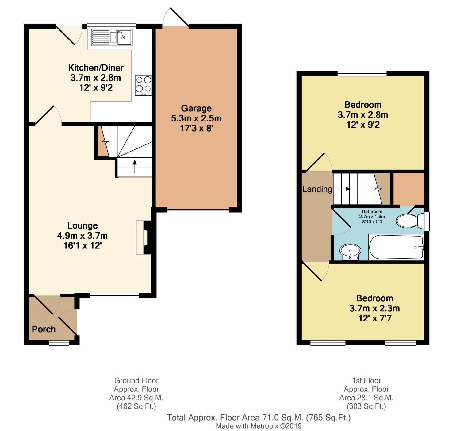 Stairs lead to the first floor landing with access to the two bedrooms and bathroom with w.C, wash hand basin, heated towel rail and bath with shower above.