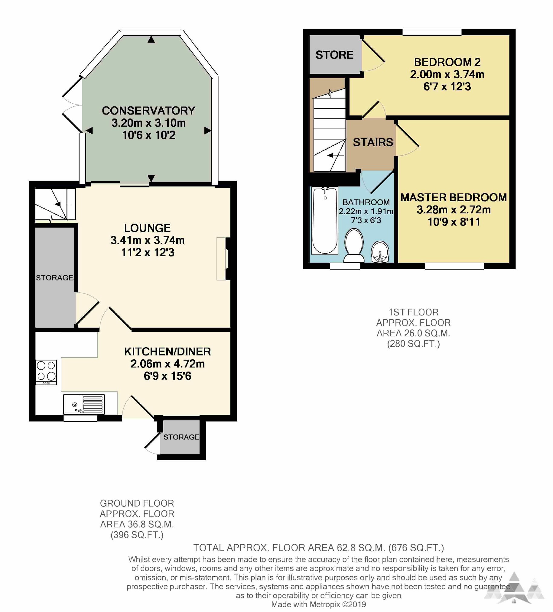 Total Floor Area: 676 sq ft / 62.8 sq m