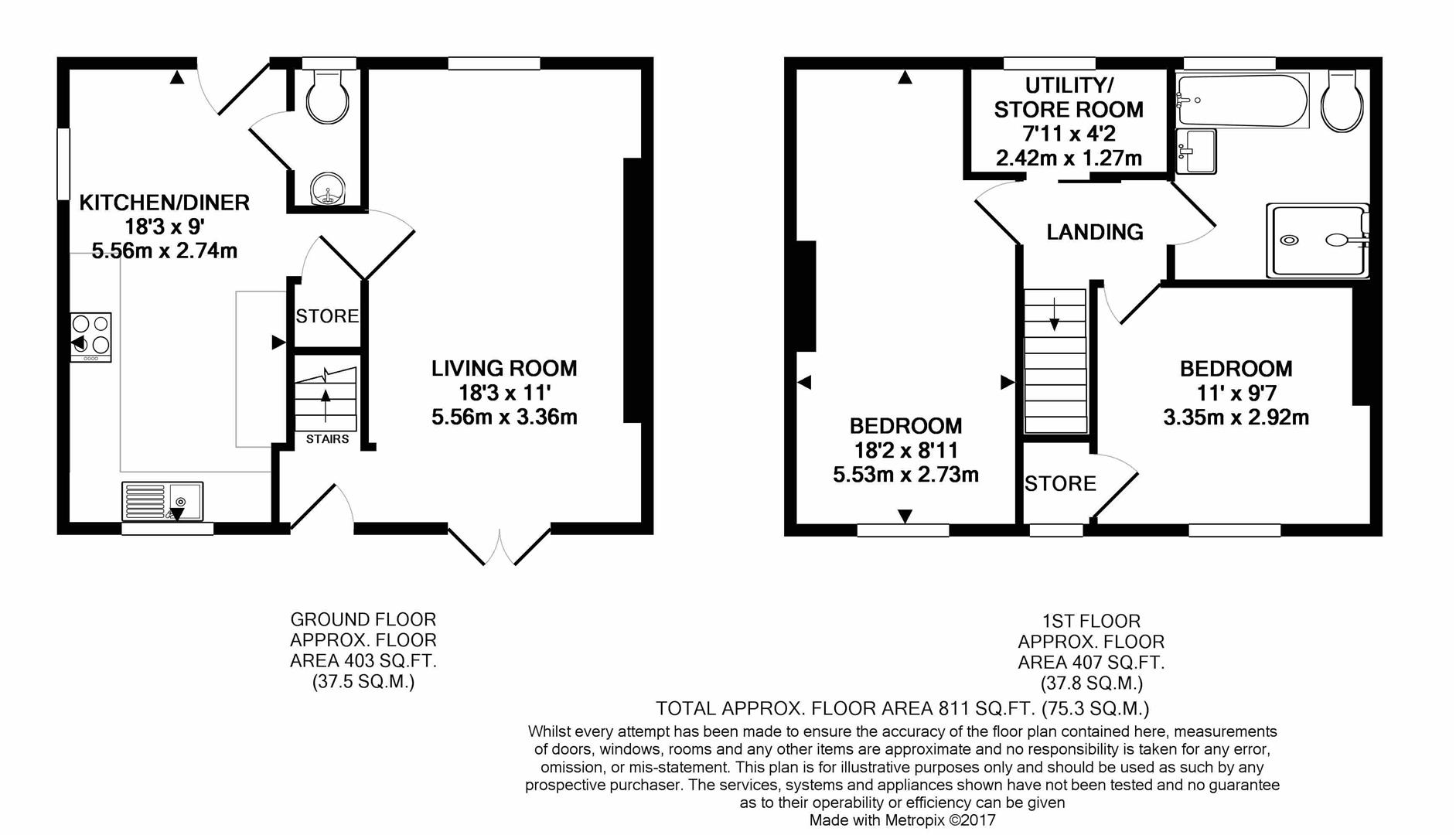 Gross internal floor area - 75.3 sq.M./811 .