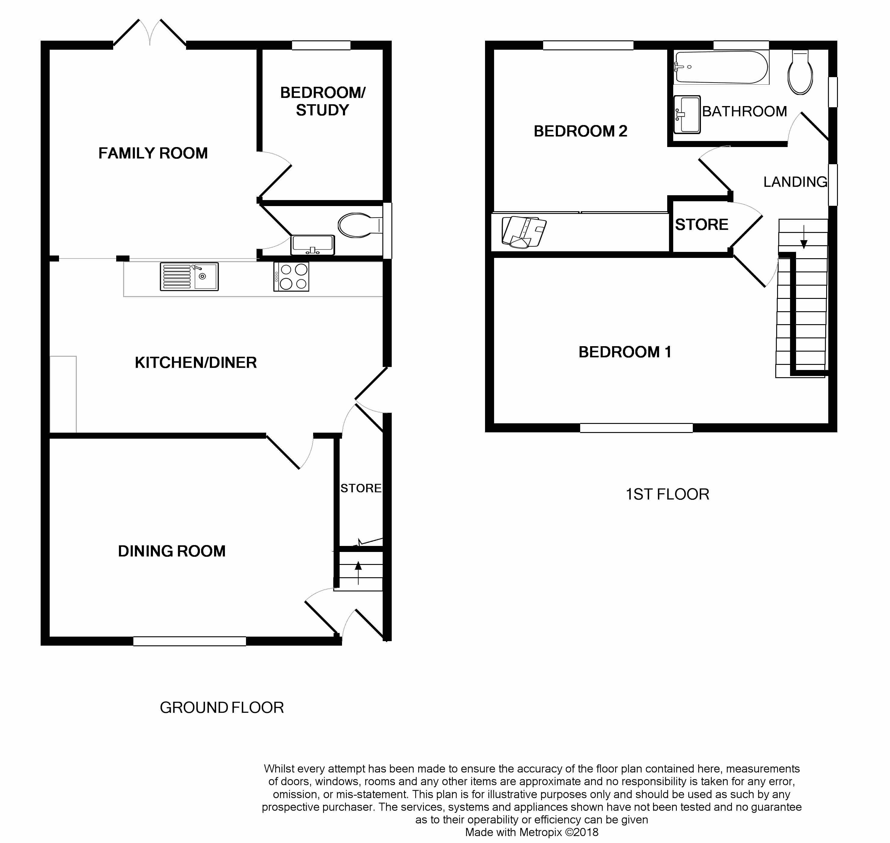 Description Externally the front has off street parking available, with gated side access down the side of the property. The rear garden has patio seating areas, a lawned garden with storage and power and play area. Entering into the hall the dining room is to the front of the property and leads into the fabulous kitchen diner. The kitchen has space for a table, cabinets, integrated oven and induction hob. A pantry provides additional storage. The kitchen leads into family area with French doors leading to the rear garden. Off this room is the 3rd bedroom/office. A WC completes the downstairs. On the 1st floor is the master bedroom to the front with double window formation providing lots of natural light. To the rear is the second double bedroom with built in wardrobes. The landing has additional storage. The modern bathroom completes the accommodation and has vanity sink with a mirrored light above, shower over the bath and a white suite with tiles. Viewing is a must to appreciate the excellent accommodation on offer.