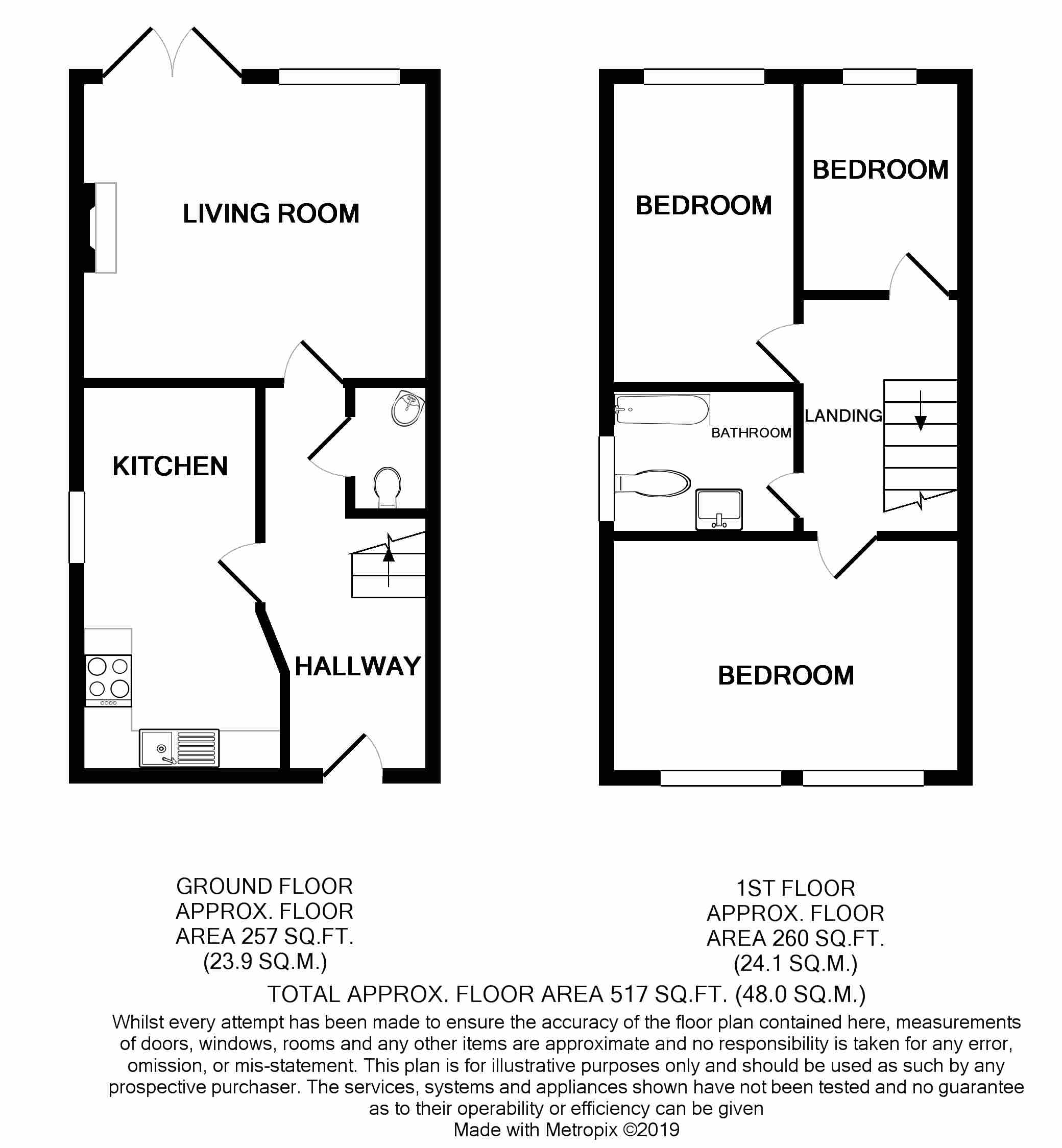 Description Externally the property has off street parking to the front for multiple vehicles and access down the side to the a car port. The rear garden is accessed through the gate and is mainly lawn with a shed and decked area to the rear. Internally the property has a kitchen diner off the hallway to the left, with fitted appliances and space for a table. The WC is located under the stairs and doubles as a cloakroom. The lounge is to the rear of the property and has French doors and a log burner. On the 1st floor the 3rd bedroom is to the rear of the property and is well presented, the second bedroom also to the rear has a bunk bed and storage. To the front the master bedroom which is tastefully presented and has space for wardrobe and storage. The bathroom has a shower over the bath and a white 3 piece suite. The property has gas central heating and double glazing throughout.