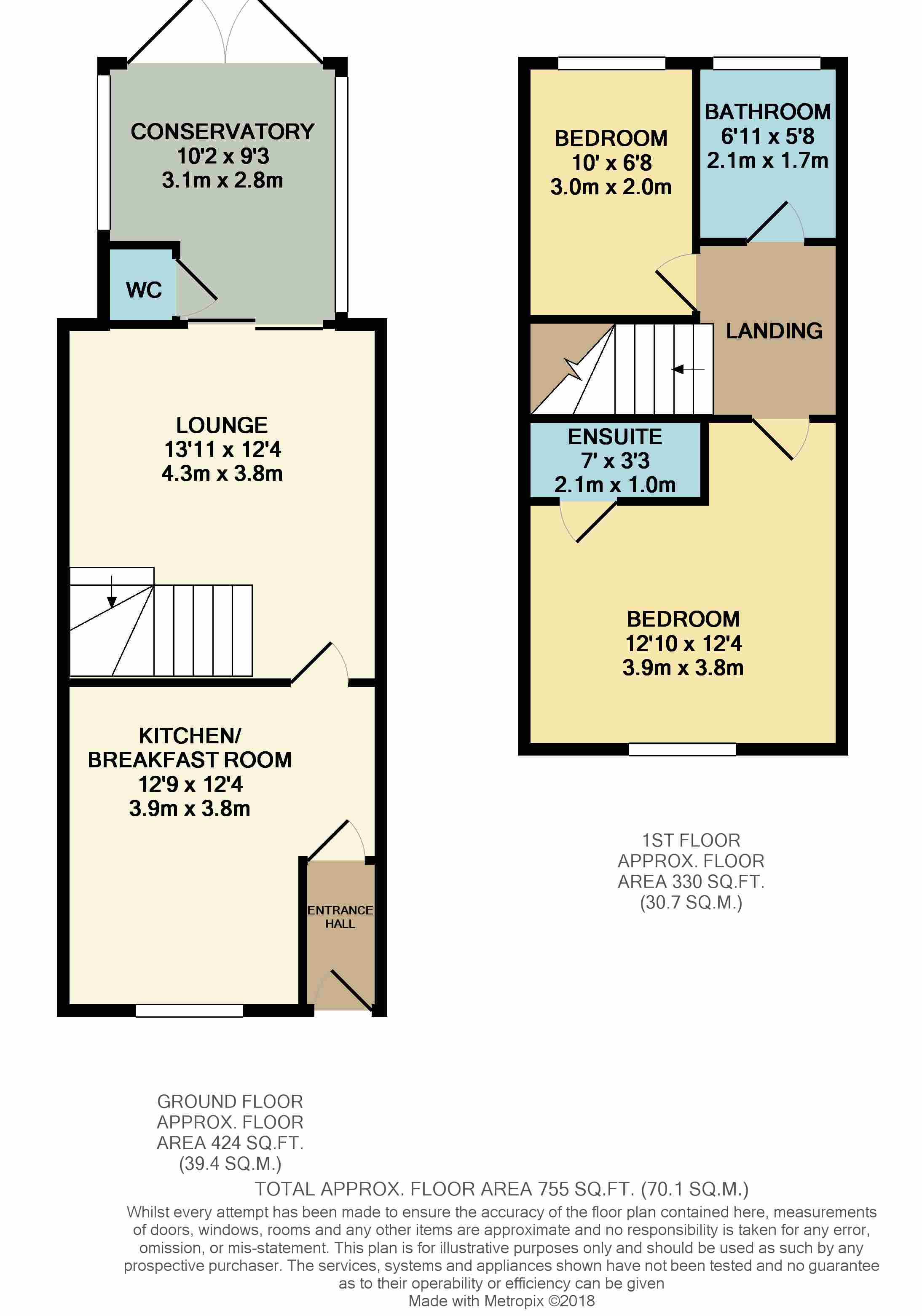 The property consists of an entrance hall, kitchen diner, lounge, conservatory and ground floor w/c. On the first floor, there is a master bedroom with en-suite and built in wardrobes, a family bathroom and second double bedroom with storage space.