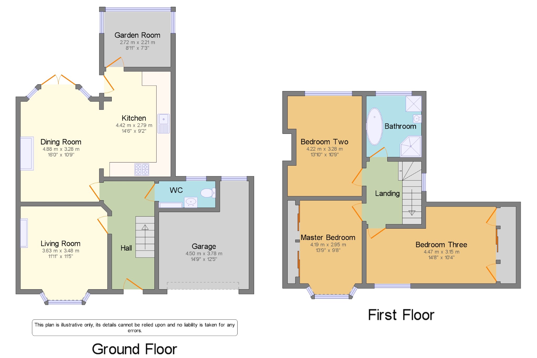 Master Bedroom13'9" x 9'8" (4.2m x 2.95m).
