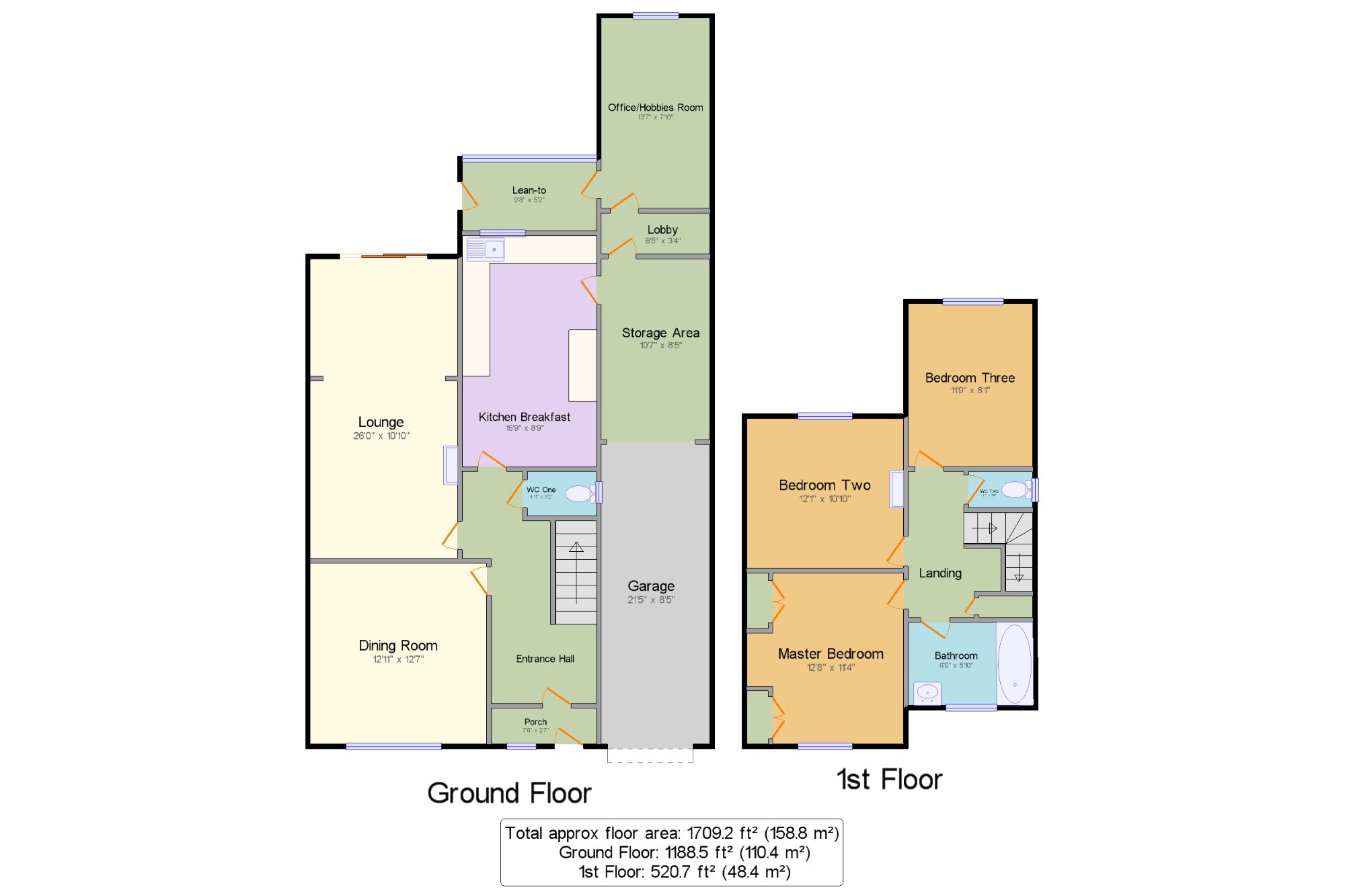 WC Two4'6" x 2'9" (1.37m x 0.84m). Double glazed frosted window to side. Low level flush w.C. Localised wall tiling.