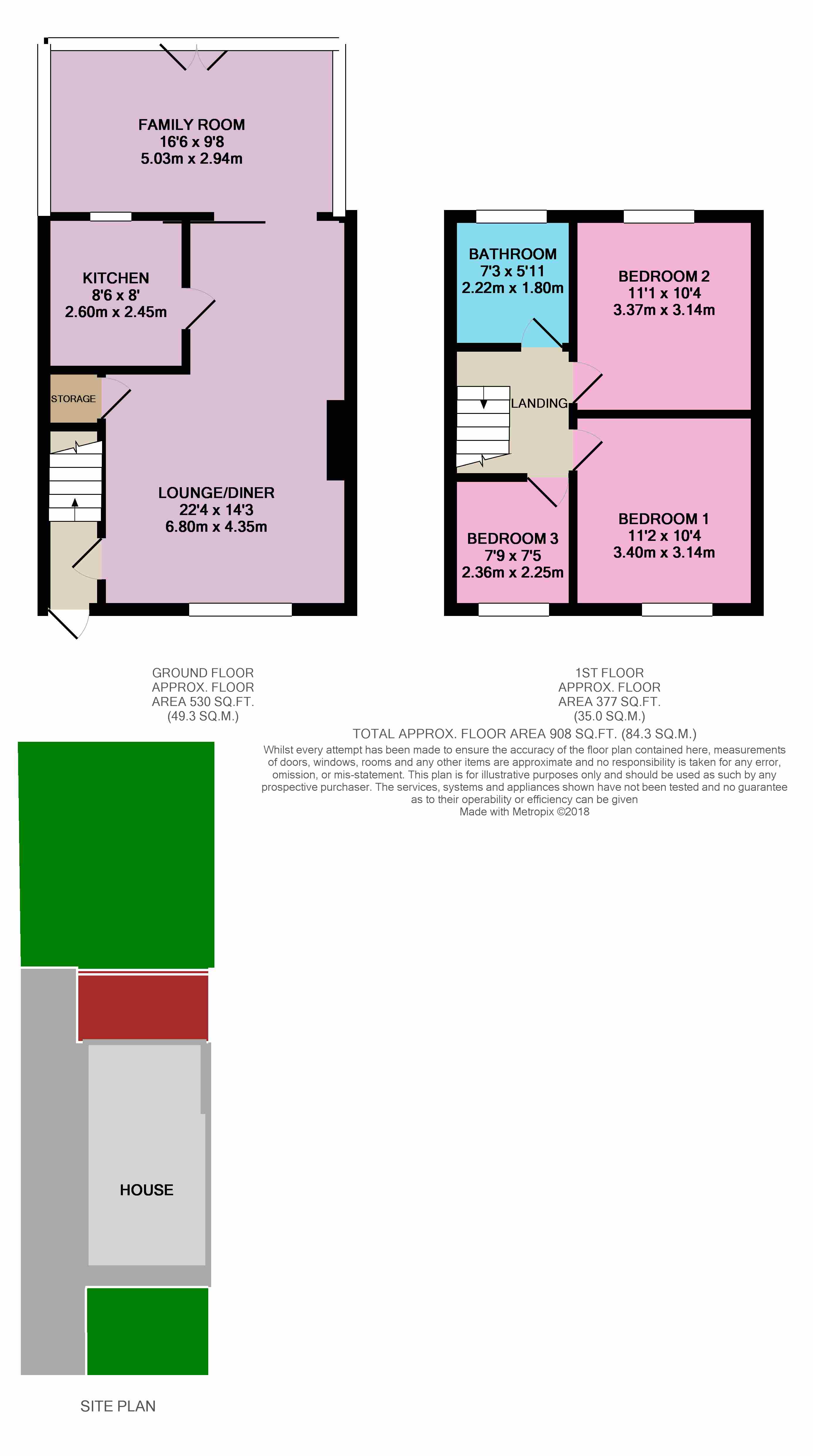 bathroom 7' 2" x 5' 10" (2.20m x 1.80m) Family bathroom with white three-piece suit and over the bath shower.