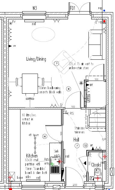 The living / dining room has room for a dining table and a sofa suite. French doors open up to your new turfed garden.