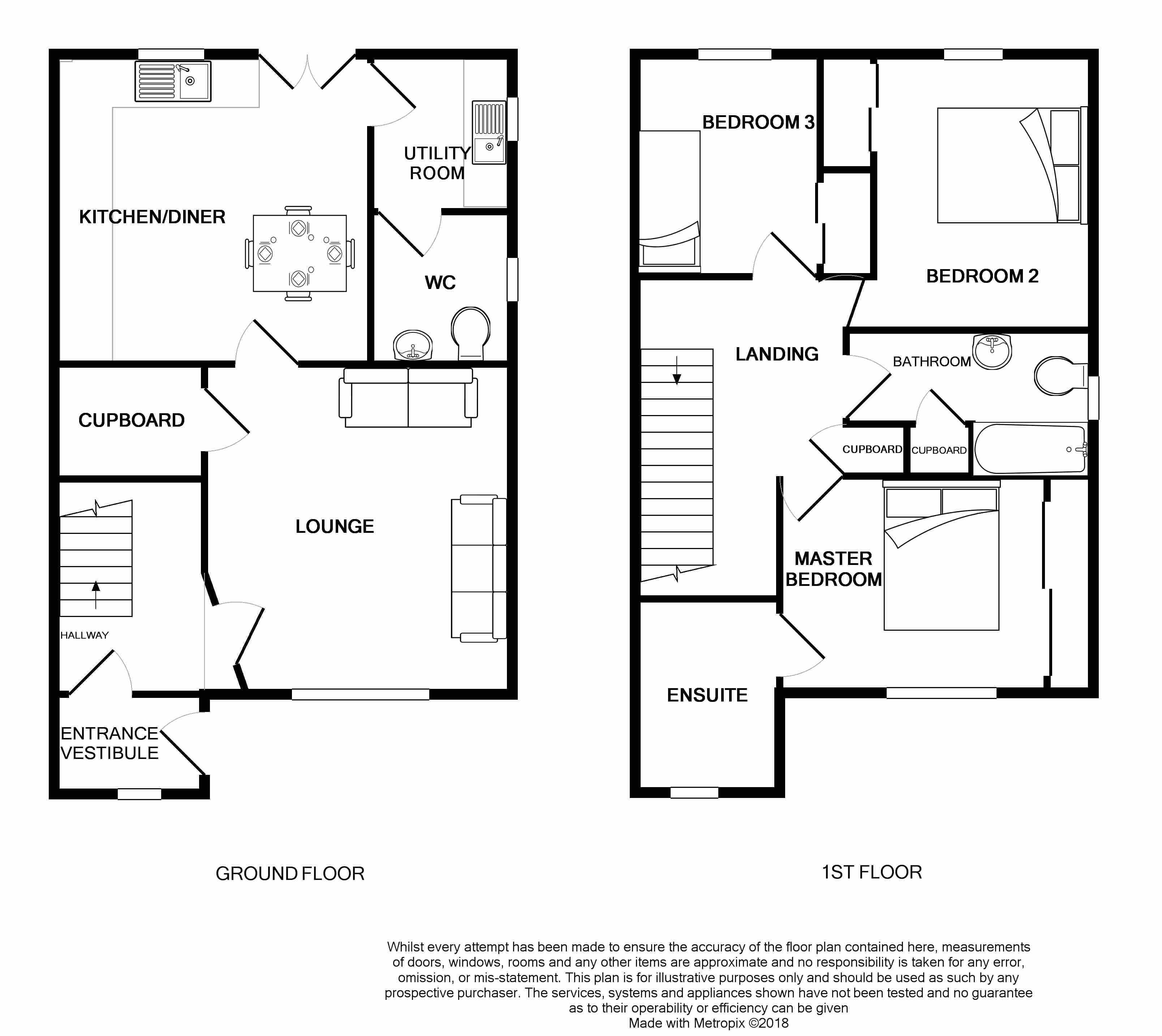 Family bathroom: 10’9” x 6’11” (3.27m x 2.10m) A three-piece white suite with an electric shower over the bath, WC and wash hand basin with splashback tiles, ceiling downlights and tiled flooring. Heated towel rail, shaving point, window and a Vectaire extractor fan. There is also a useful storage cupboard here.
