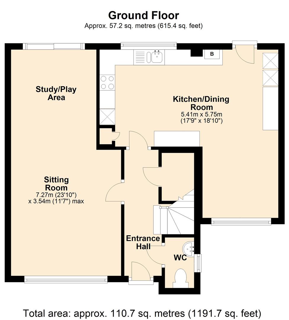 Part glazed uPVC front door opens into a nice sized bright and inviting entrance hall. Ceiling light. Coved. Central heating thermostat. Radiator. Power and telephone points. Laminate flooring. Stairs rising to the first floor with storage cupboard under. White panelled doors to the cloakroom, kitchen/dining room and to the:-
