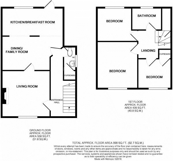 The ground floor comprises an entrance hall, lounge with a feature log burner and rustic style fireplace, a light and airy extended kitchen/dining/family room complete with breakfast bar and French doors opening out to the rear garden. There is also a useful downstairs cloakroom. The first floor boasts three bedrooms and a stylish family bathroom.