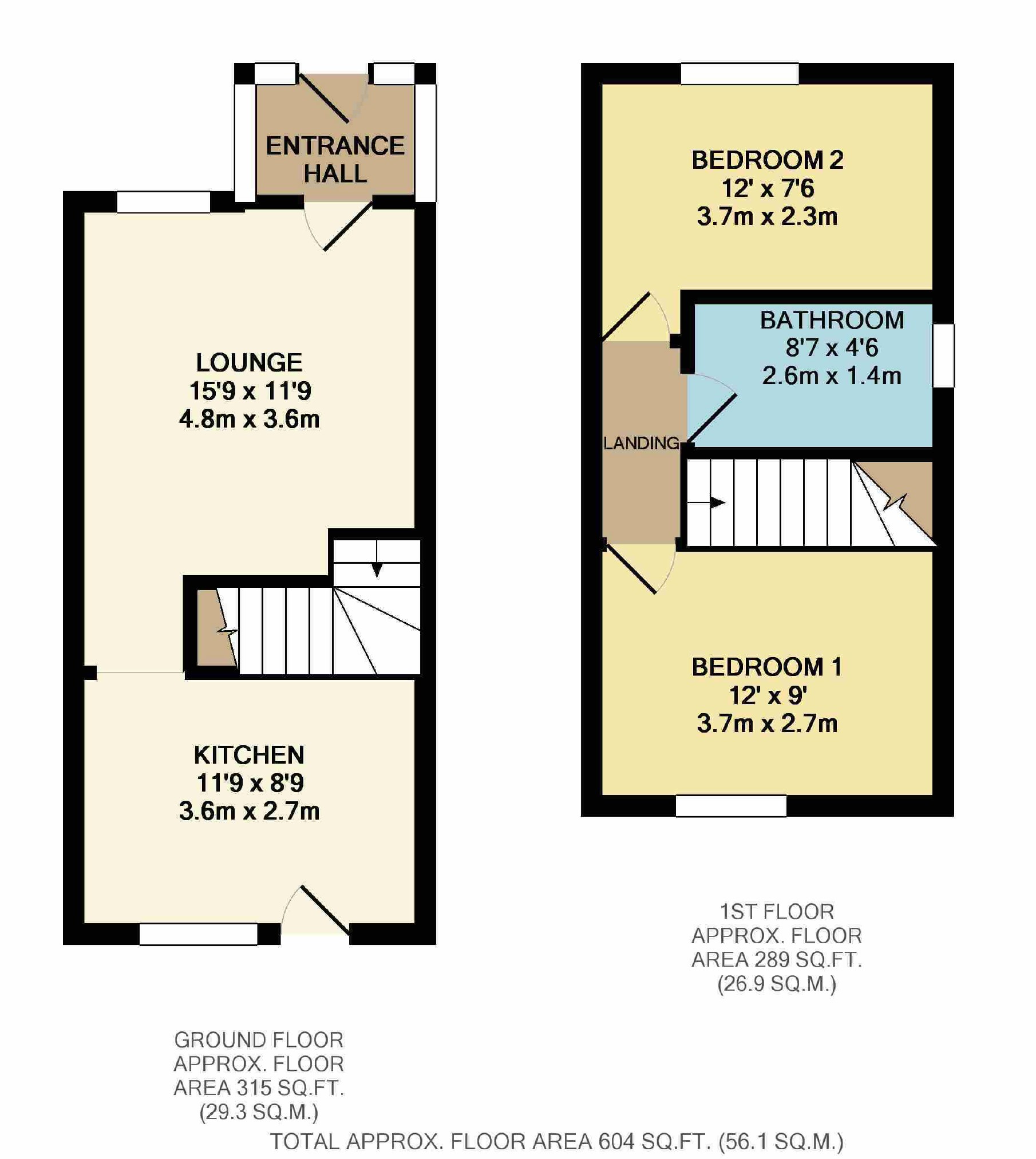 At first floor there are two double bedrooms and a white three piece bathroom with shower over the bath. Additionally there is a useful airing cupboard with plenty of storage space and a Worcester gas fired central heating boiler.