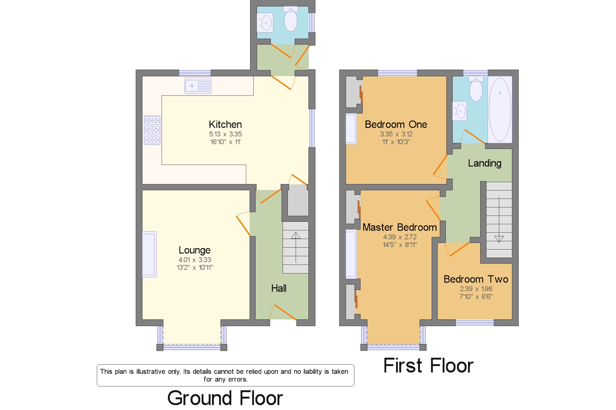 Bedroom Two11' x 10'3" (3.35m x 3.12m). Another good sized double bedroom with inbuilt storage cuboards uPVC window and a radiator.