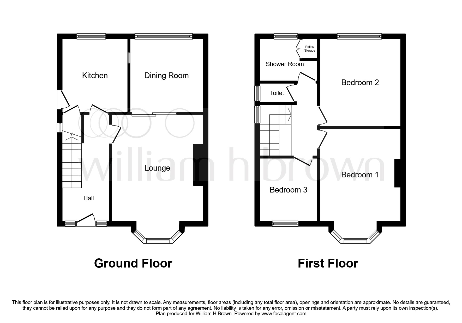 Bedroom 1 12' 7" + bay window. X 11' ( 3.84m + bay window. X 3.35m )