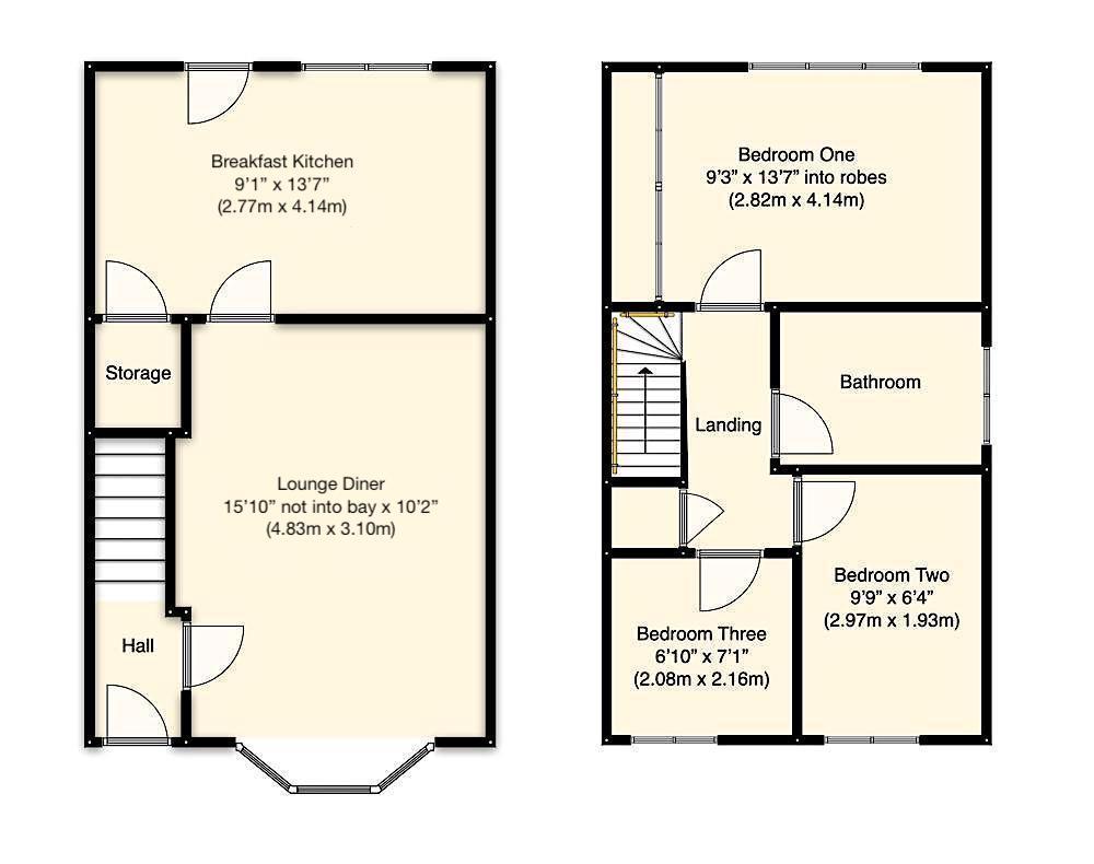 Stairs rise to the first floor landing which gives access to three bedrooms and bathroom, with a hatch to the loft space with ladder.