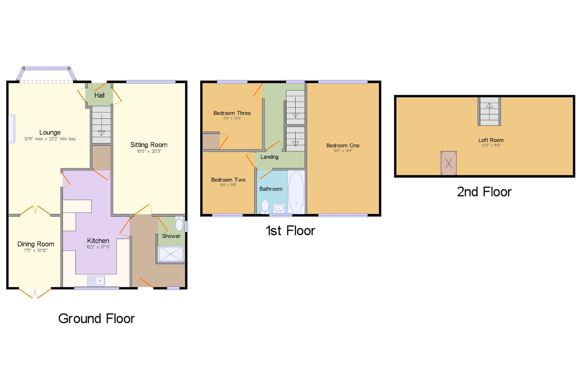 A deceptively spacious and extended three bedroom semi detached property which has accommodation comprising hall, spacious lounge, sitting room, dining room, kitchen and shower room. On the first floor are three bedrooms and bathroom. On the second floor is the loft room. Outside the property has a block paved driveway to the front and a generous size garden to the rear with double garage. This fantastic property would make the perfect family home and is being sold with no chain.