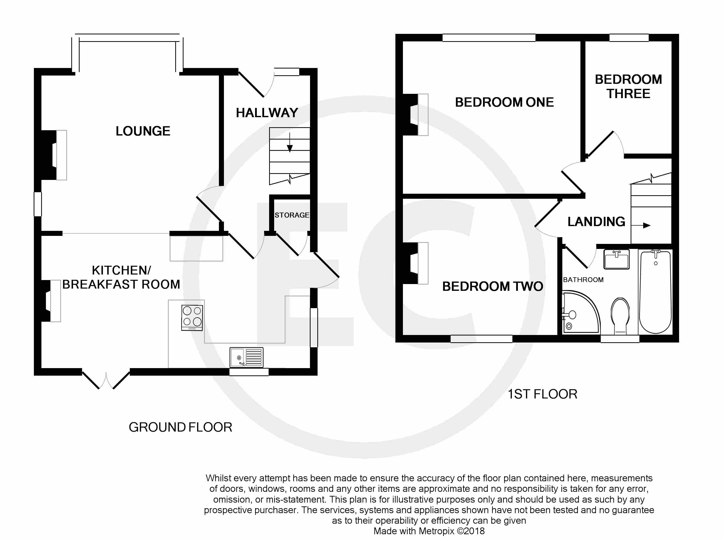 Bedroom three 7' 5" x 7' 2" (2.26m x 2.18m) Double glazed lead light window to front, radiator.