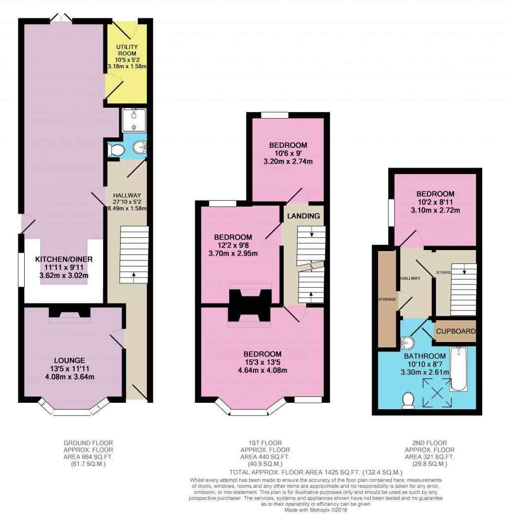 The first floor has 3 of this homes 4 bedrooms. All have oak timber floors and a feature fire place. The master bedroom has a large bay window with views out over the front of the property. The second bedroom is a comfortable double room and the third could easily take a double bed but feels more comfortable as a single room.