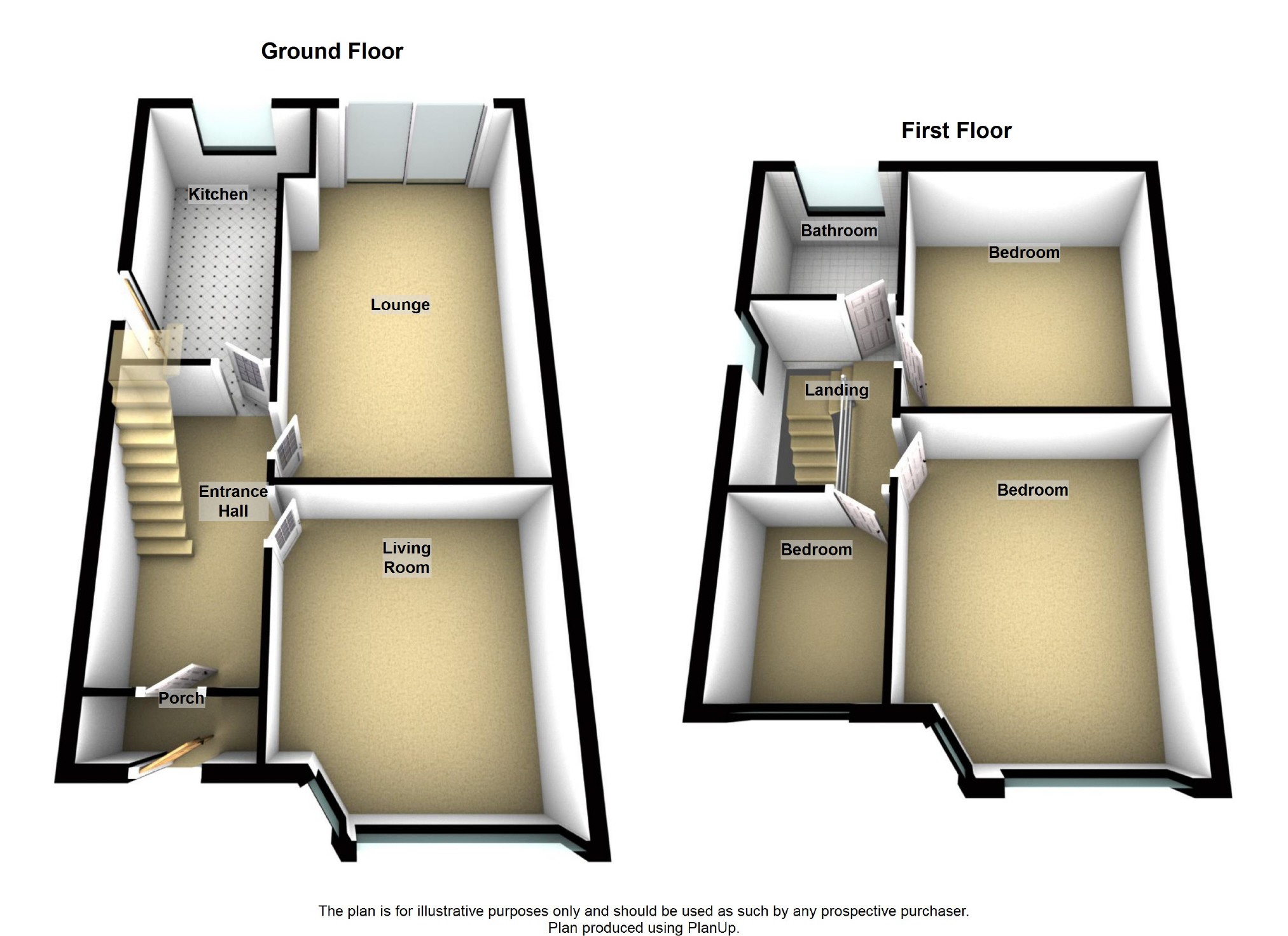 UPVC double glazed window to rear. Tiled flooring and walls. White suite incorporating corner bath with shower over, pedestal wash basin and close coupled W.C. Vertical towel rail radiator. Loft access.