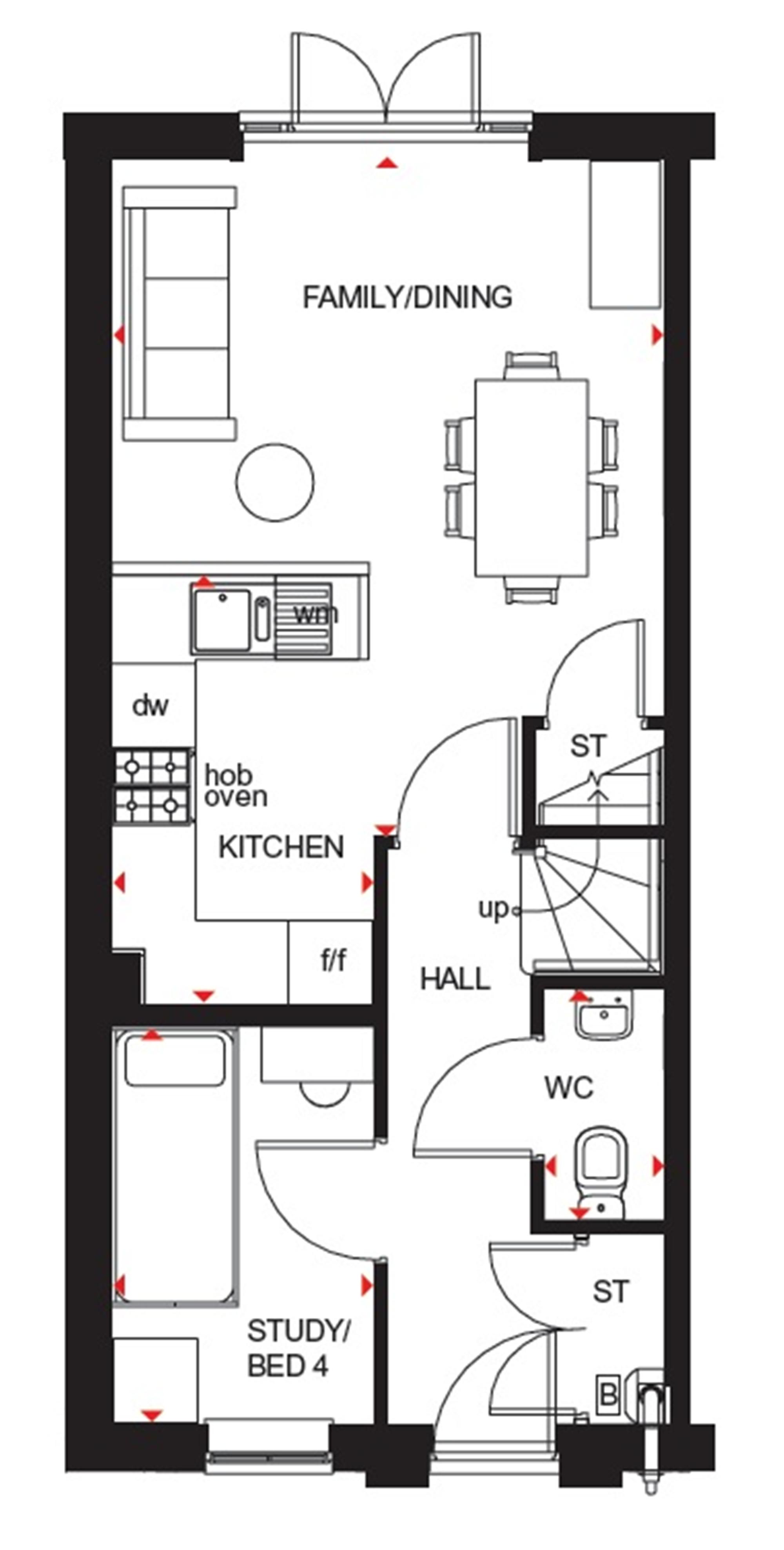 A stylish four bedroom home which is great for families. The open-plan kitchen/dining and family area is perfect for spending time with your little ones, and it has french doors leading to the garden. There's also a single bedroom which could be used an office/study. The lounge, and master bedroom with en suite is on the first floor. There's two more double bedrooms and a shower room upstairs.