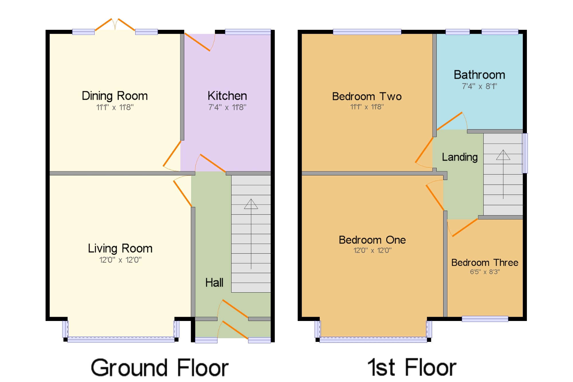 Living Room 12' x 12' (3.66m x 3.66m). Wooden door, uPVC bay window unit, ceiling light fixture, wooden flooring, wall radiator. Fire place with surround and mantelpiece.