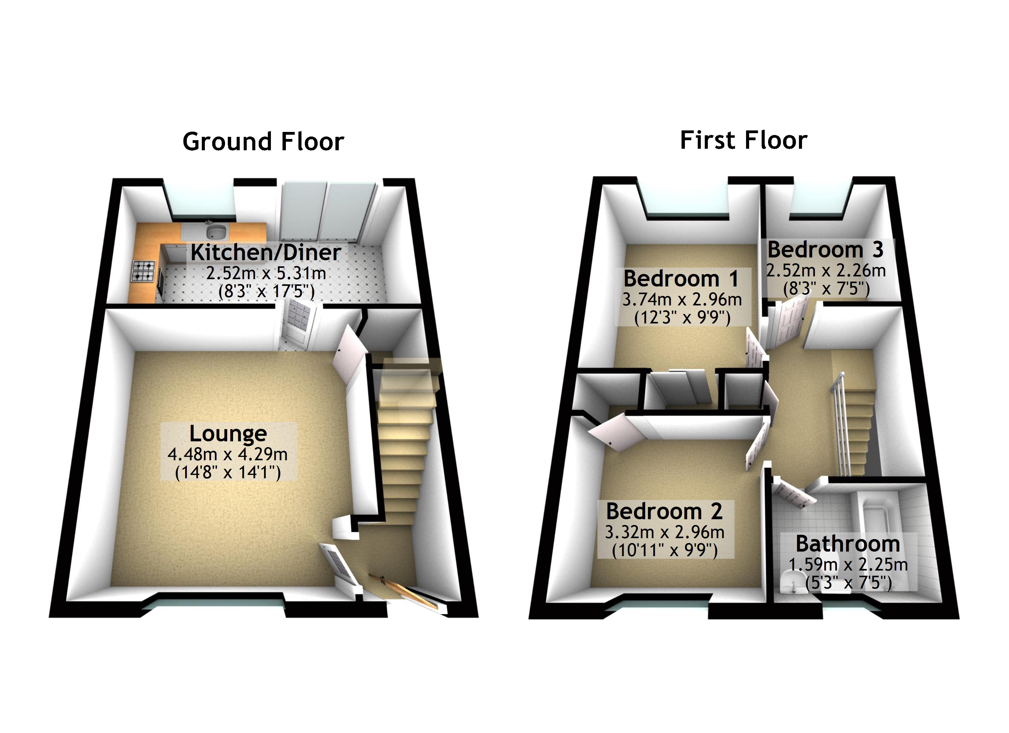 In more detail, the property consists of a hallway. Large living room allowing for free standing furniture and different furniture configurations. The kitchen comes with floor to ceiling units, gas hob, hood, and oven. Space for washing machine and fridge freezer. Access to the back garden can also be found in the kitchen. There are three good sized bright and airy bedrooms, all allowing for free standing furniture and two benefiting from built-in storage. The family bathroom completes the property internally with shower from mains over bath, wash hand basin and WC. The property also benefits from gas central heating and double-glazed windows.