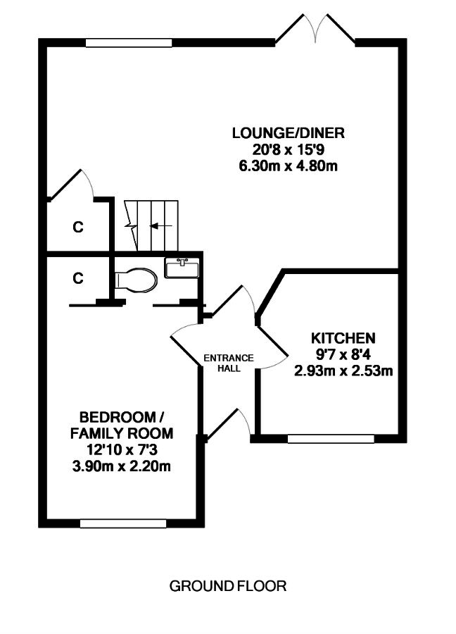The family room/ bedroom three looks over the front aspect, boasting striking flooring, attractive décor and storage. Cloakroom boasts a W.C and wash hand basin.