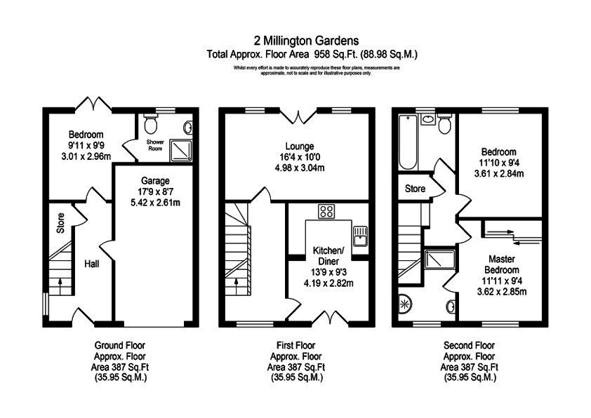 Situated on a popular development, this three bedroom end townhouse has living accommodation arranged over three floors briefly comprising to the ground floor welcoming entrance hallway, integral garage and bedroom 3 which has the benefit of an en suite shower room. To the first floor there is a good sized lounge with french doors and Juliet balcony and a kitchen/breakfast room with integrated appliances and french doors with Juliet balcony. To the second floor is the master bedroom with en suite shower room, a further double bedroom and family bathroom. Externally there is a small lawned garden and a driveway provides off road parking and leads to the integral garage. To the rear there is a fully enclosed garden, which is mainly laid to lawn and is stocked with a variety of mature trees and shrub borders. An internal viewing is highly recommended