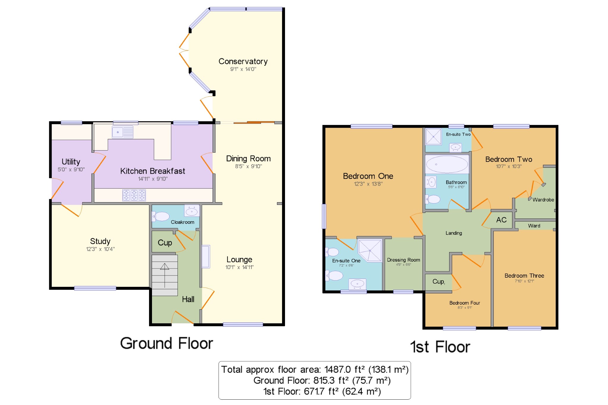 Bedroom One12'3" x 13'8" (3.73m x 4.17m). Double aspect double glazed uPVC windows facing the rear and side. Open to the dressing room.