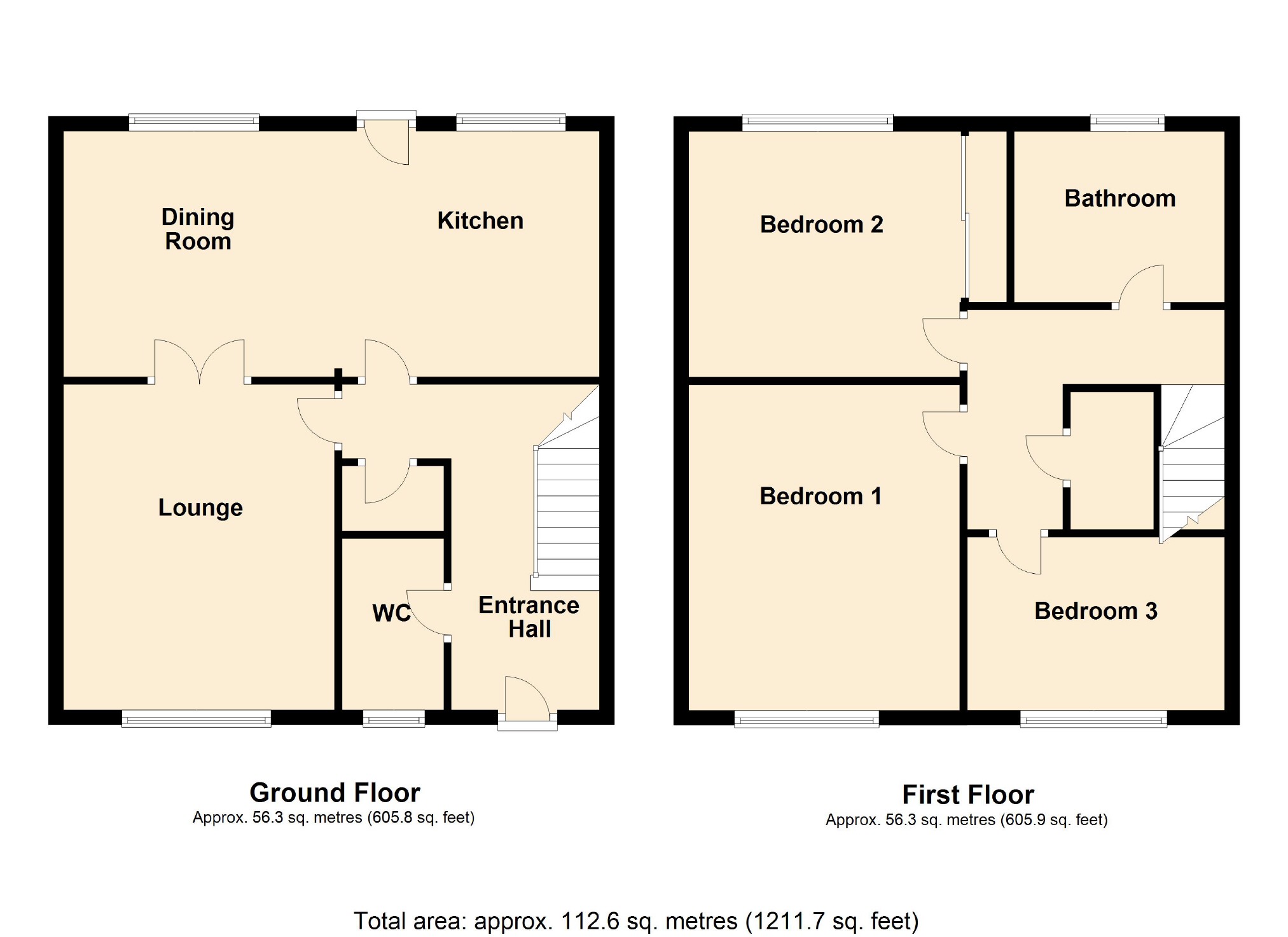 Entrance door leading into entrance hall, door leading to lounge and kitchen, door leading to cloakroom W.C, door leading to storage cupboard, stairs leading to the first floor, fitted carpet.