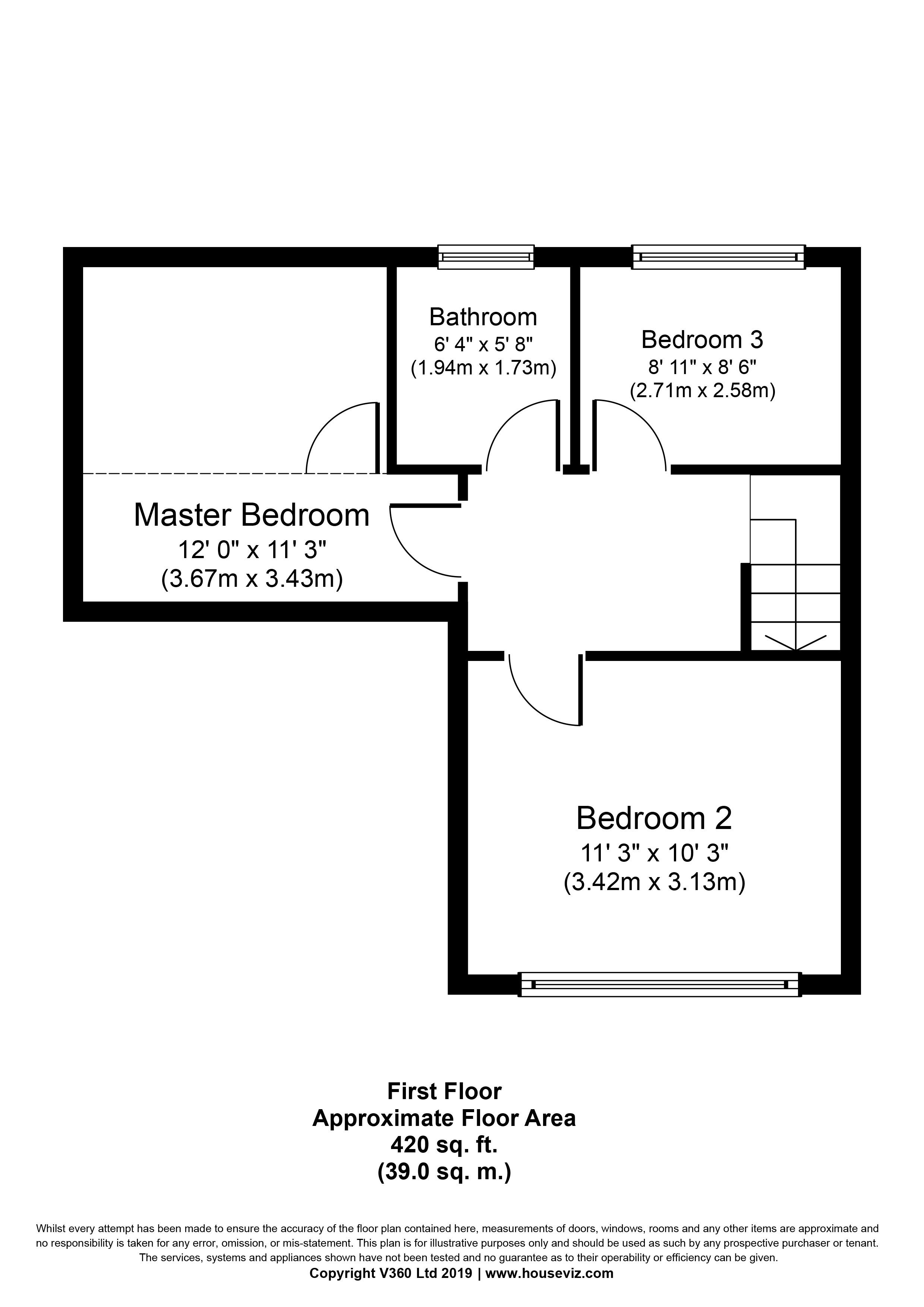 3.93m (12' 11") x 3.67m (12' 0")