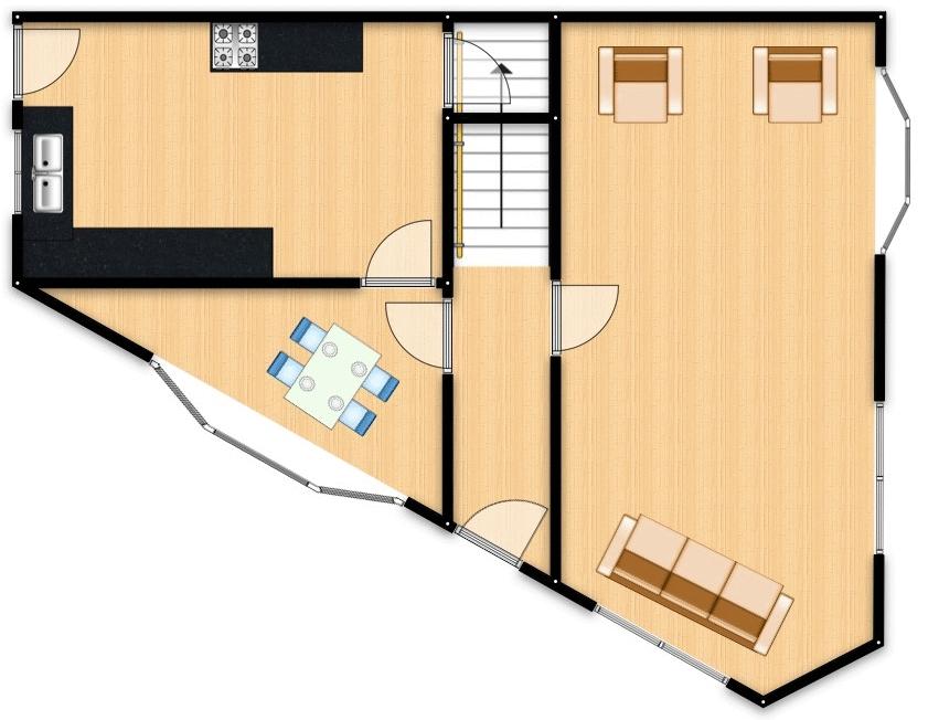 Fitted with a range of wall and base units with complimentary roll top work surfaces and stainless steel sink and drainer unit. Space for cooker, fridge/freezer and washing machine. UPVC door to the side, double glazed window to the side, ceiling light point and lino flooring.
