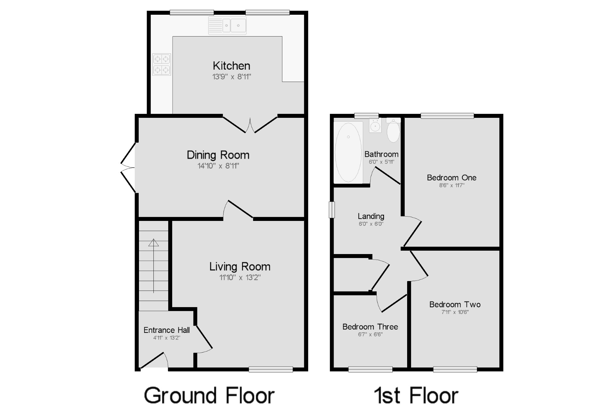 Bedroom One8'6" x 11'7" (2.6m x 3.53m). Double glazed uPVC window facing the rear. Radiator, fitted wardrobes, ceiling light.