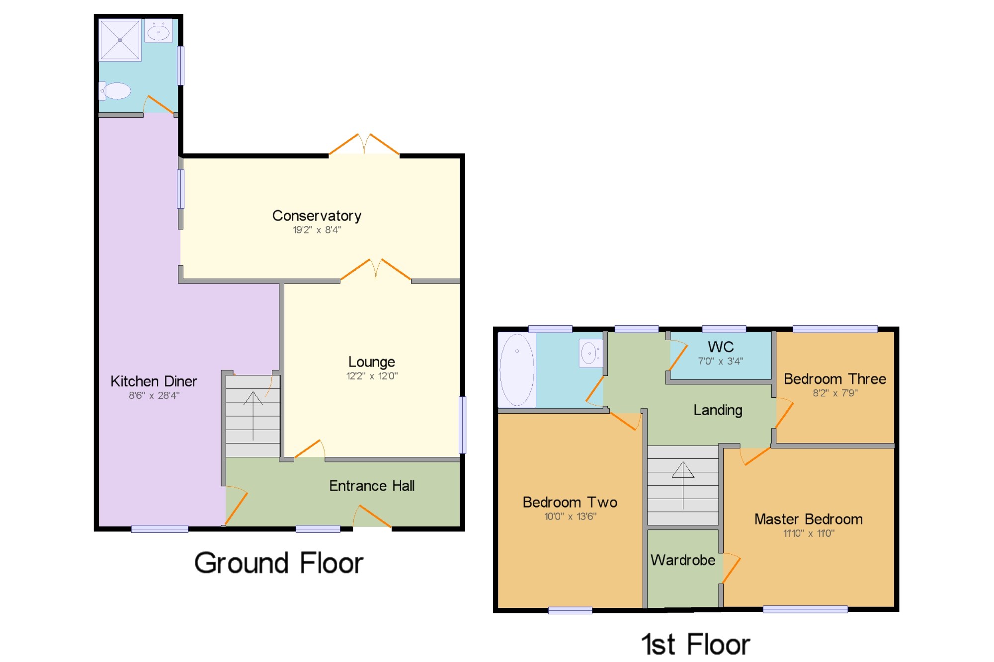 Master Bedroom11'10" x 11' (3.6m x 3.35m). Double glazed uPVC window facing the front and walk-in wardrobe.