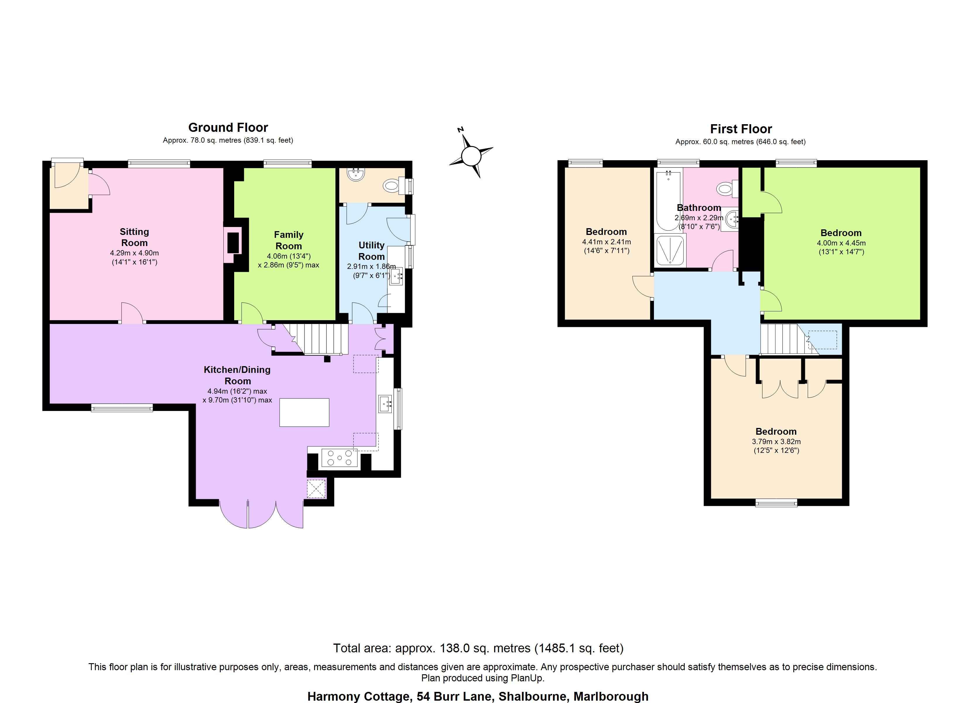 cabinets are complimented by marble and woodblock work surfaces and polished flagstone flooring. Triple aspect and with a Velux window above, this lovely room is flooded with natural light. Off the Kitchen/Dining room is a separate Study/Family room, a useful Utility/Boot room and finally a Cloakroom/W.C. Upstairs there are three very well proportioned