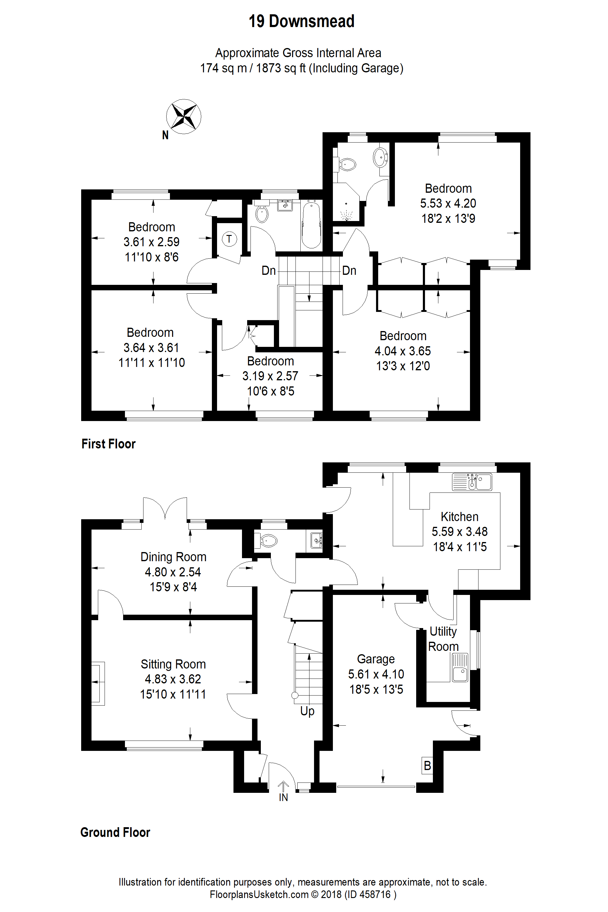 Description 19 Downsmead is immaculately presented throughout with well proportioned rooms, giving it a light fresh feel. The entrance hall has solid oak flooring through to the dining room which has double doors to the garden. Off the hall is a sitting room adjoining the dining room. At the rear of the property is a beautiful kitchen/breakfast room which has a range of wall and base units. There is also a cloakroom and utility room and storage cupboards downstairs. On the first floor there is a master bedroom with a well appointed en-suite shower room with a further three double bedrooms and a single bedroom as well as a family bathroom. The house sits in a quiet part of this cul de sac and has broad appeal for comfortable family living. There is a tarmac drive with parking for 4 cars. There is a garage with an up and over door, power and lighting. The front garden is laid to lawn with mature shrubs and flower borders. A path leads to the rear garden which is mainly laid to lawn and enclosed by conifer hedging. There are two paved sun terraces, outside lighting and water as well as a handy shed.