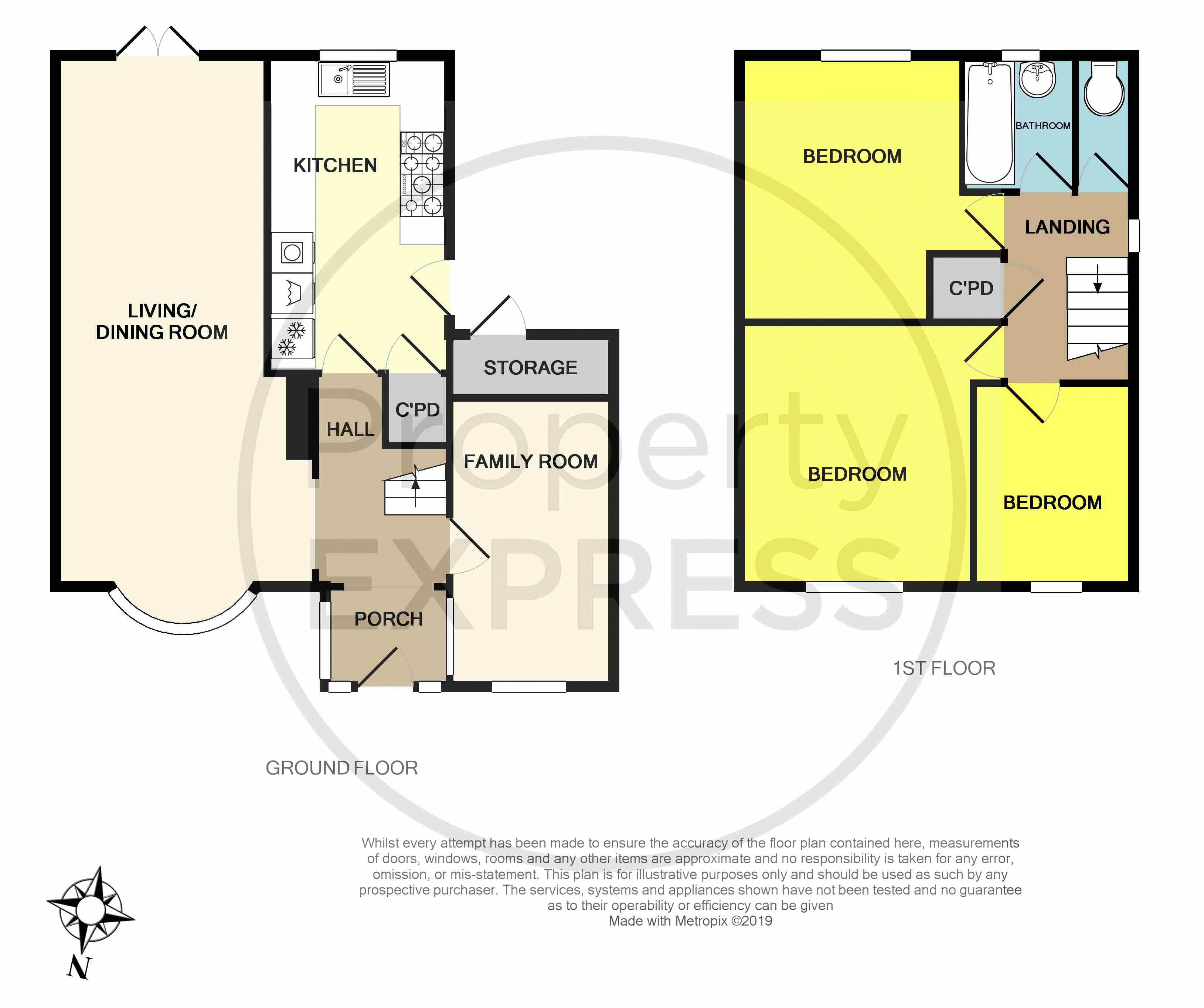 With doors to three bedrooms, bathroom/WC, airing cupboard and loft access hatch