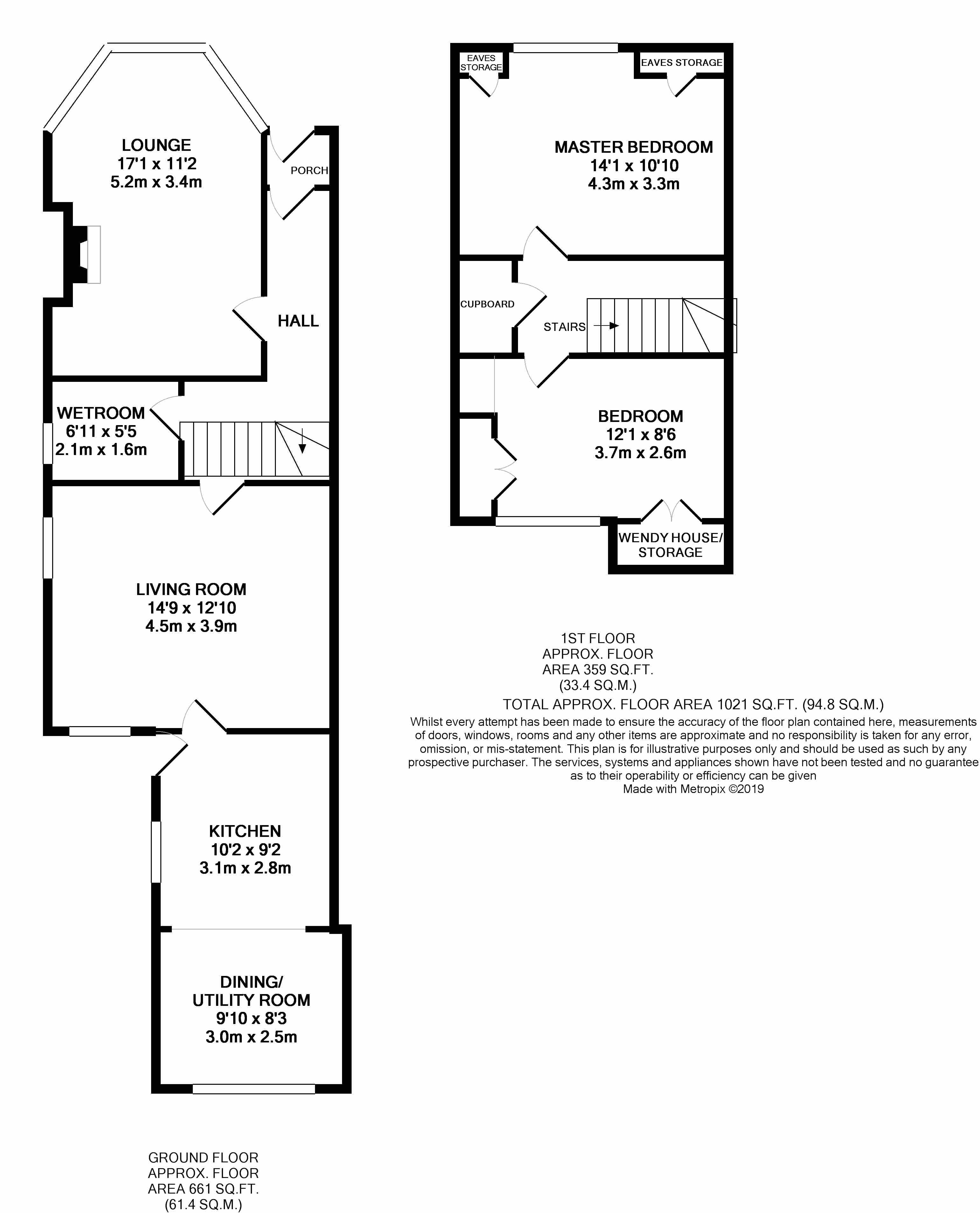 The ground floor consists of a porch and a hallway where there is a spacious cupboard under the stairs. The front lounge benefits from a large bay window which provides an ample amount of natural light, making it feel bright and spacious, there is a gas fire with a marble hearth and surround. The modern wet room makes showering simple and easy and benefits from a non slip floor. The spacious rear living room has dual aspect windows, it also has an open fire with a ready supply of wood available from the woods at the back of the garden! The kitchen is of an older style, however the false ceiling could be removed to expose timber beams with the option to install a velux window although not necessary as there is already ample natural light. There are three steps down to the dining/utility area where there is space for a dining table along with a washing machine and dryer, the key feature here being the windows running the width of the room and providing beautiful views through the huge garden.