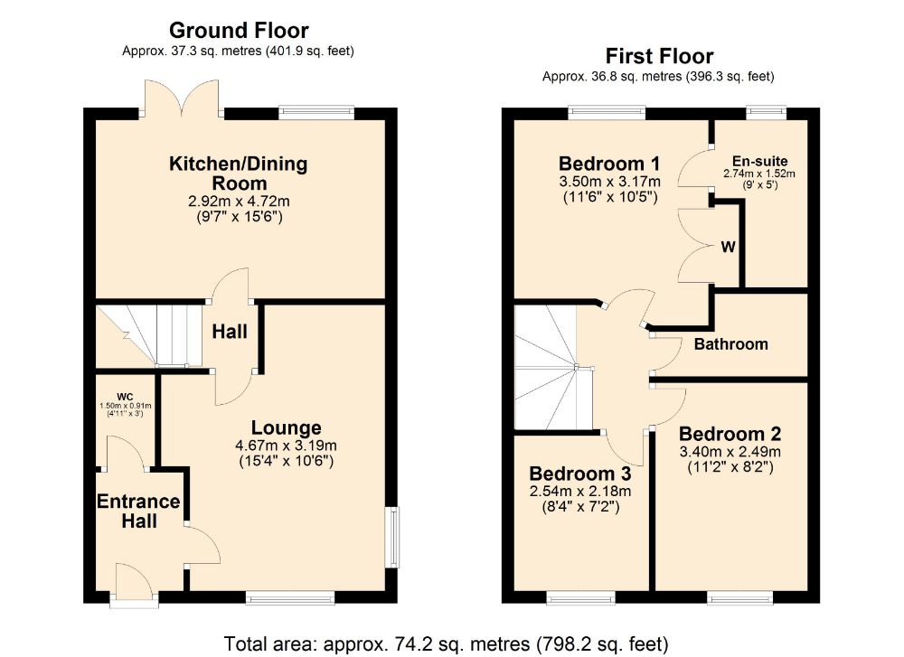 Offered to the market in beautiful condition is this three bedroom semi-detached home pleasantly situated in a courtyard style cul-de-sac. Built by ‘Messrs’ David Wilson, the well-presented accommodation comprises entrance hall, downstairs WC, kitchen/dining room and lounge. Upstairs are three bedrooms (the master bedroom benefiting from an en-suite and built in wardrobe) and a family bathroom. Outside the front has pebbled borders leading to off road parking for two cars under a carport and the rear garden is easy to maintain laid with block paving and steps leading to a further decking area. Benefits include UPVC windows and gas central heating. EPC: C