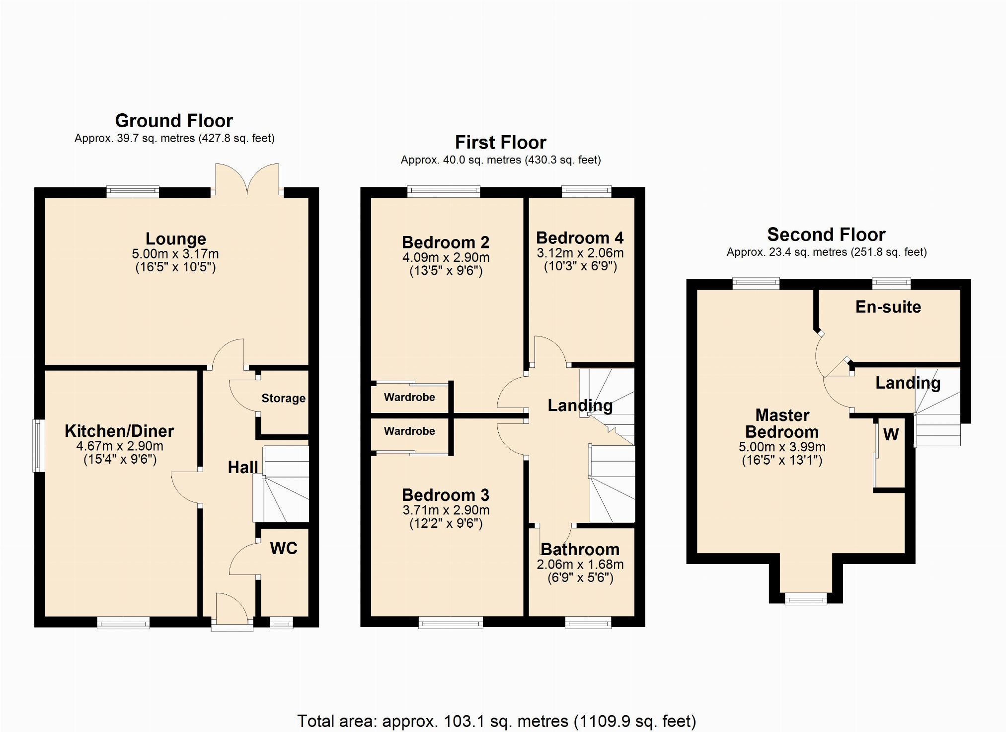 Master bedroom 3.99m (13'1max) x 5.00m (16'5max)