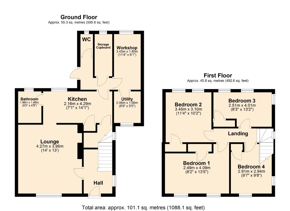 UPVC double glazed window to side elevation. UPVC double glazed door into garden. Door to downstairs WC. Door into workshop. Door to storage cupboard.