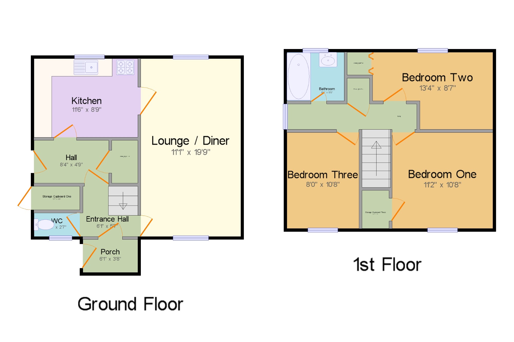 Bedroom One11'2" x 10'8" (3.4m x 3.25m). Double bedroom; double glazed uPVC window facing the front. Radiator, carpeted flooring, built-in storage cupboard.