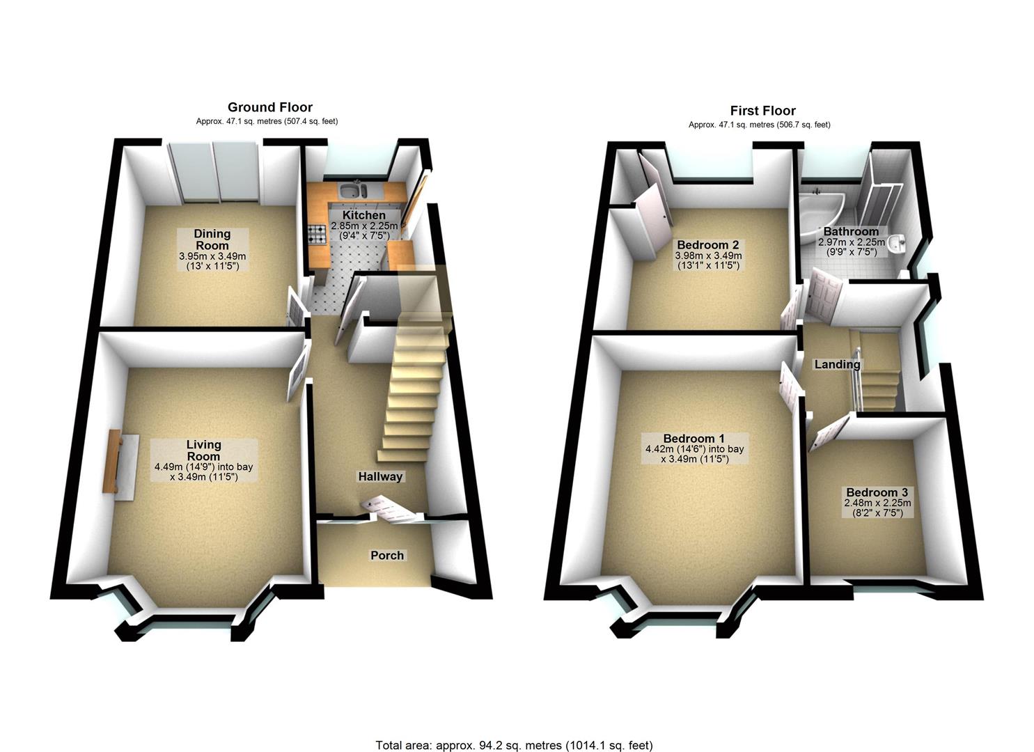 UPVC double glazed bay window to front aspect, feature open fire with surround, double radiator.