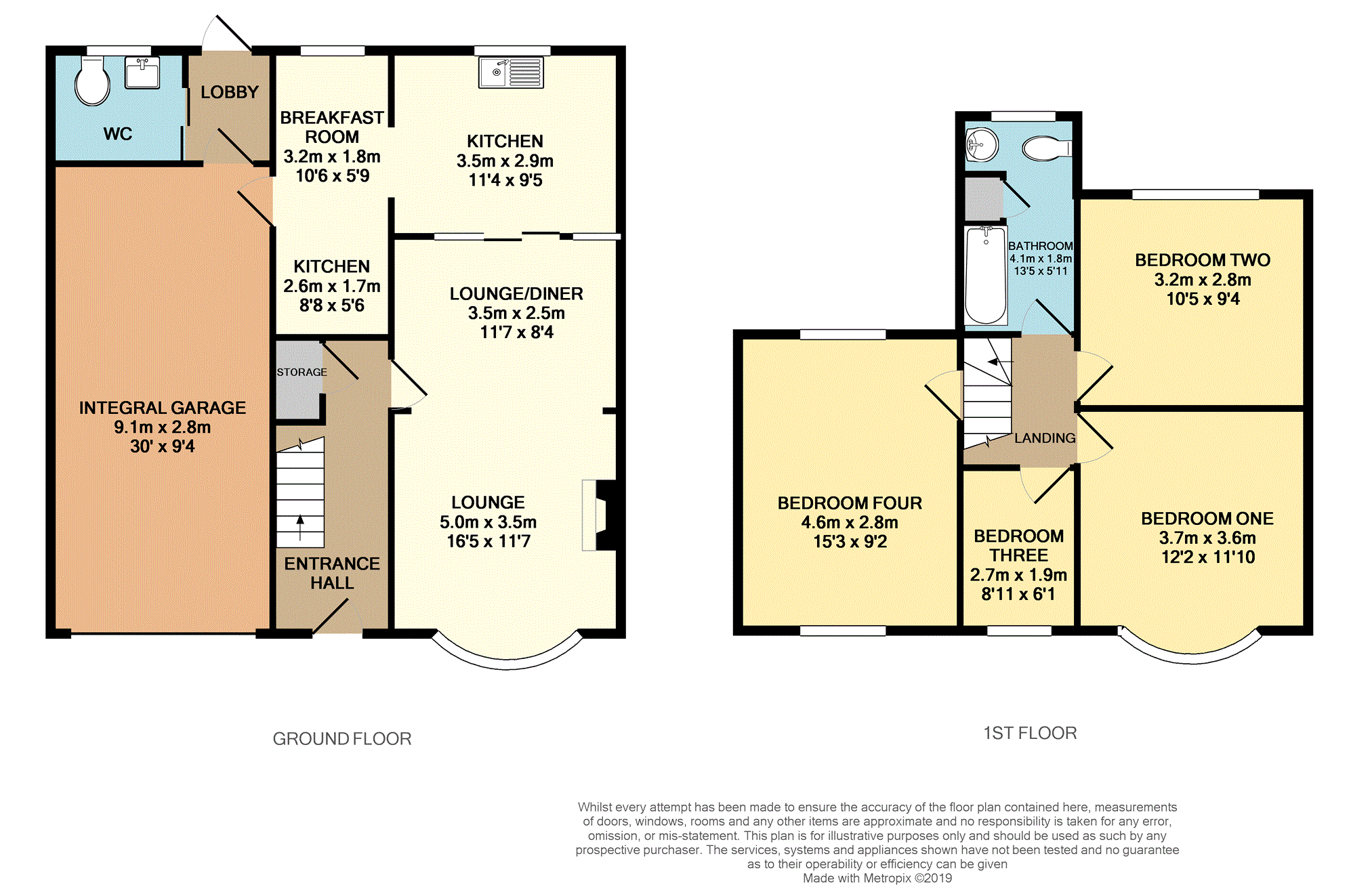 A staircase from the hallway leads to the first floor landing and four bedrooms, three of which are doubles and a part tiled and extended family bathroom.