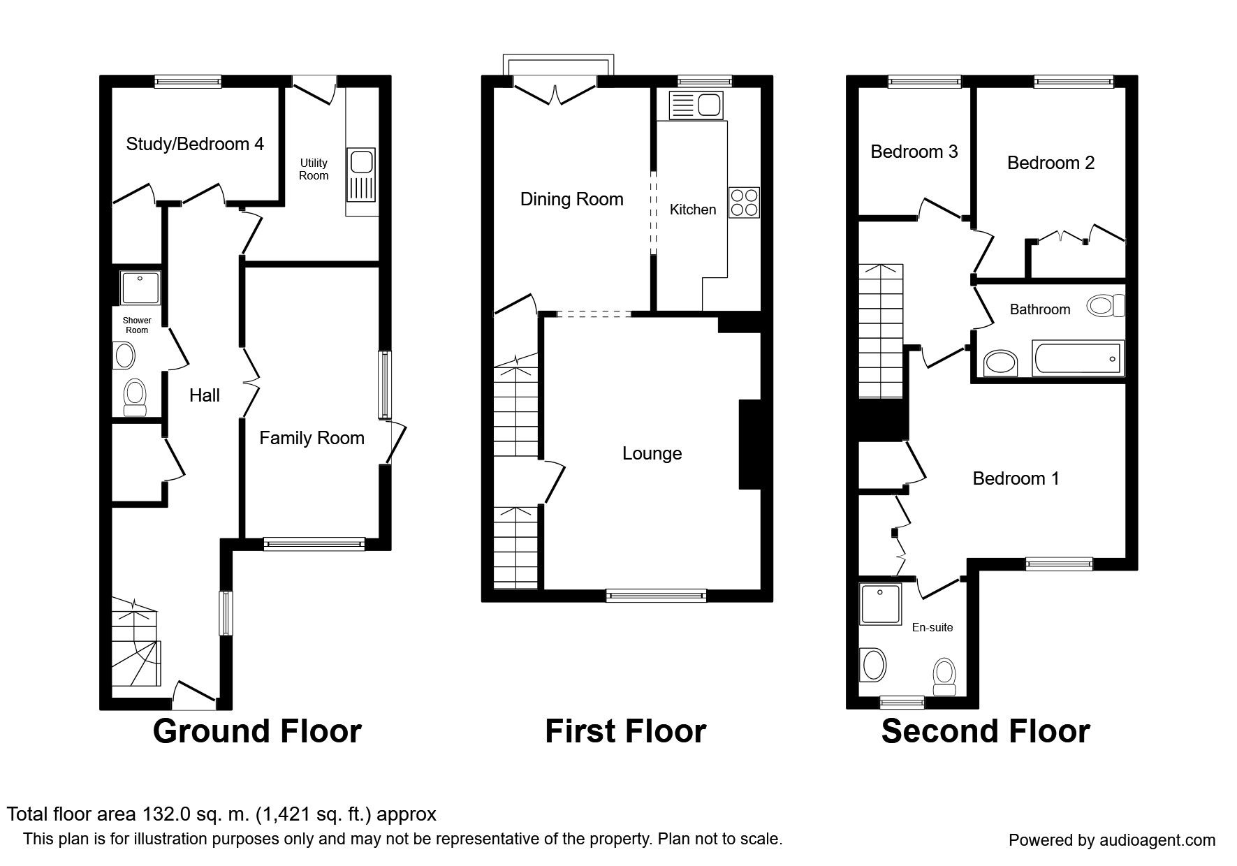 A superbly presented, four bedroom, three storey semi-detached house. Providing spacious accommodation, ideal for the family with gas central heating, double glazing and comprises; entrance hall, shower room, family room, study/bedroom 4, utility room, landing, lounge, dining room, kitchen, second floor, three bedrooms, en-suite and family bathroom.