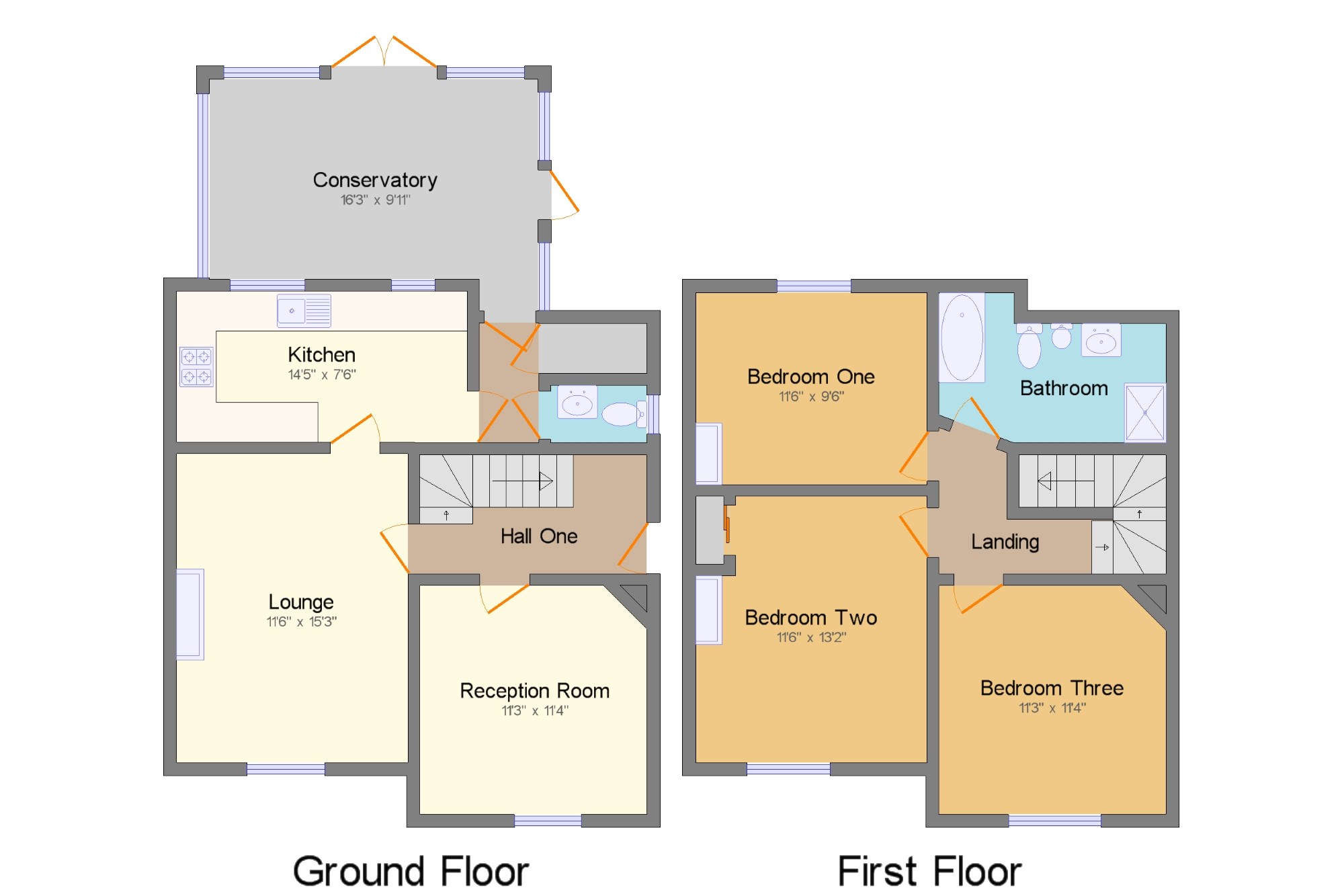 WC4'9" x 2'10" (1.45m x 0.86m). A two piece suite located on the ground floor.