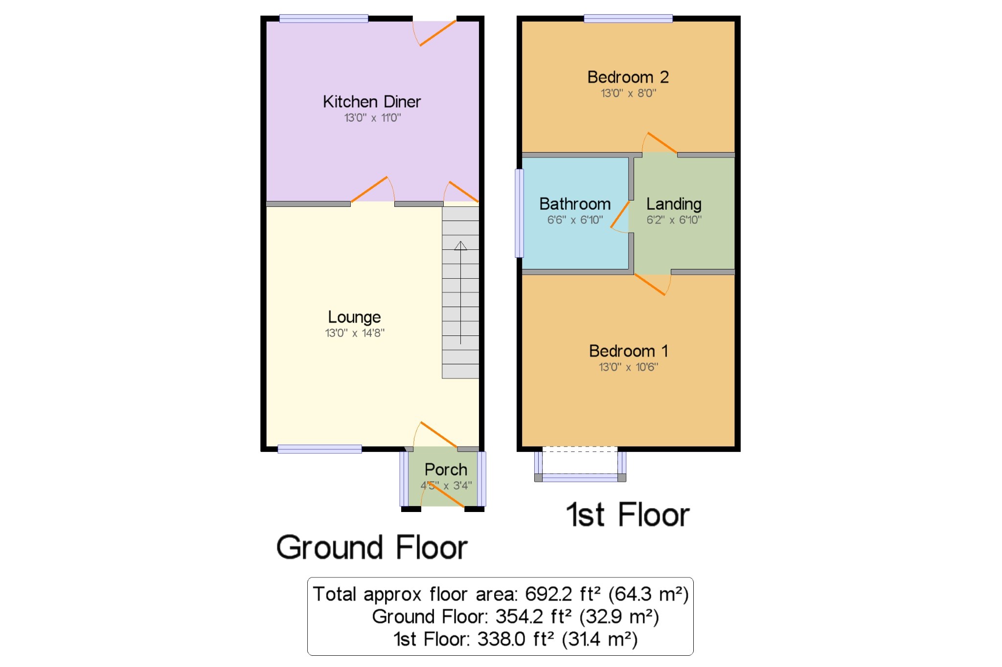 This delightful two bedroom home provides everything you need for modern living and more. Ideal for the perfect first time buyer home. An internal inspection is highly recommended. The ground floor is home to an open plan kitchen diner which also features access to the rear garden, allowing the space to be filled with natural light and perfect for bringing the outside in. The living room is perfect for day to day living or relaxing providing a beautiful feature bay window to the front elevation and staircase leading to the first floor. Added touches of convenience include an entrance porch. Upstairs, you will find two double bedrooms and three piece bathroom suite. Externally, the property provides off road parking and a single detached garage. The rear garden is low maintenance with flowering pots and secure by enclosed fencing. View to appreciate.