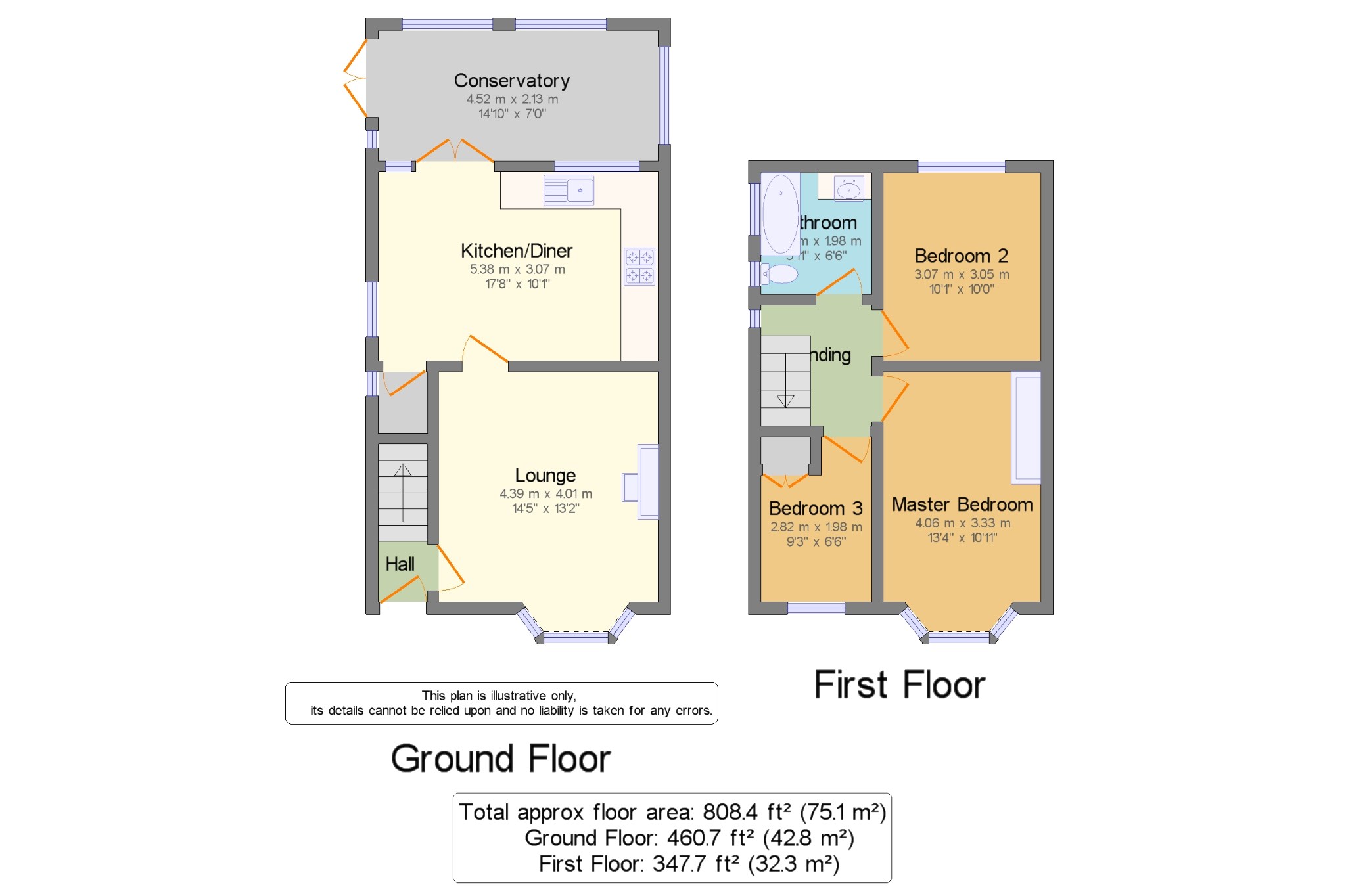 Master Bedroom 13'4" x 10'11" (4.06m x 3.33m). Double glazed uPVC bay window facing the front. Radiator, carpeted flooring.