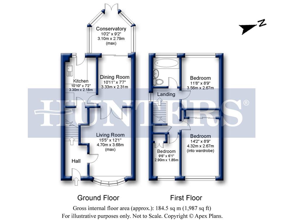 3.10m (10' 2") X 2.79m (9' 2")