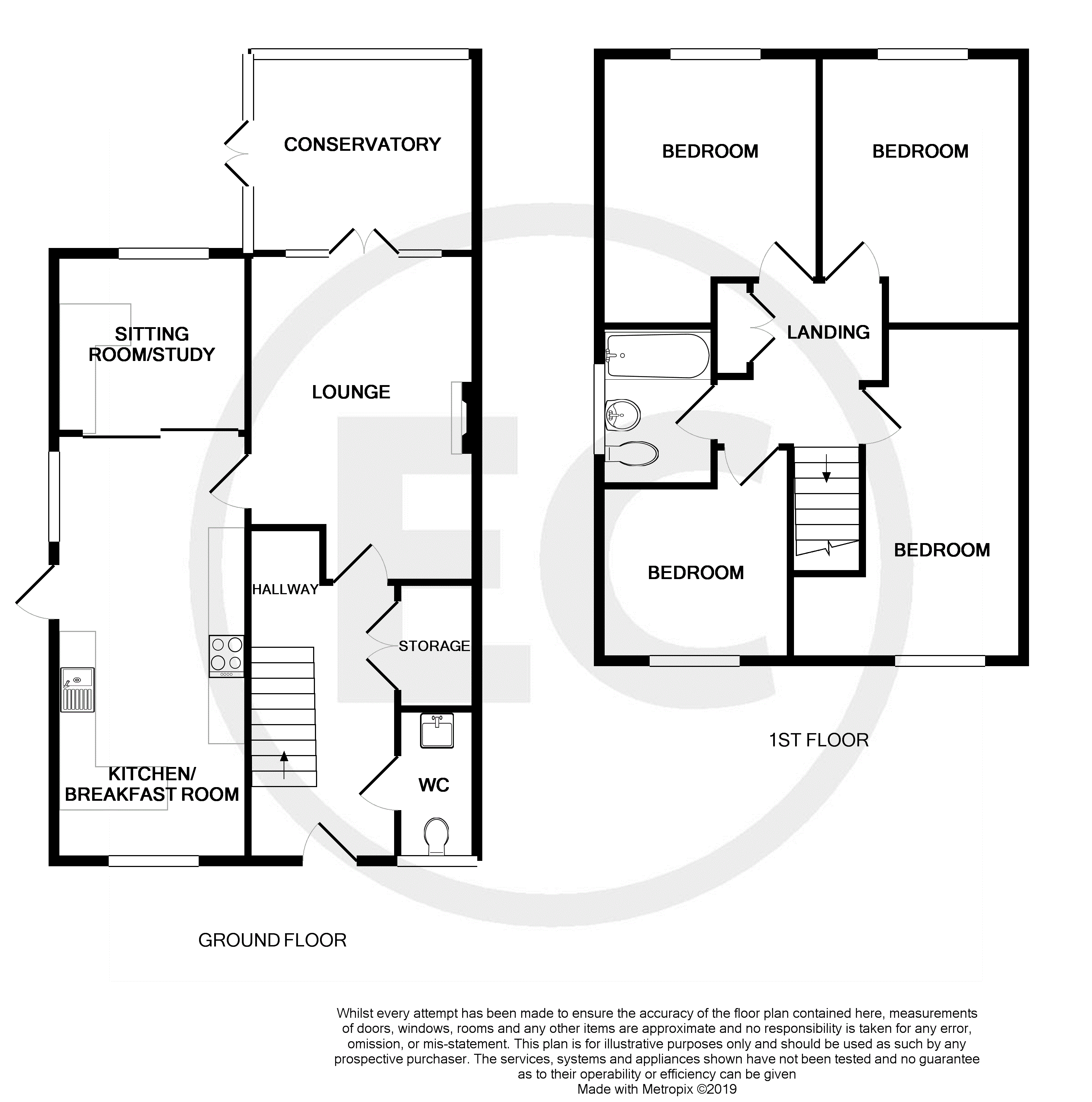 Ground floor cloakroom Obscure double glazed windows to front aspect, low level WC, vanity unit with wash hand basin inset, heated towel rail, laminate flooring.