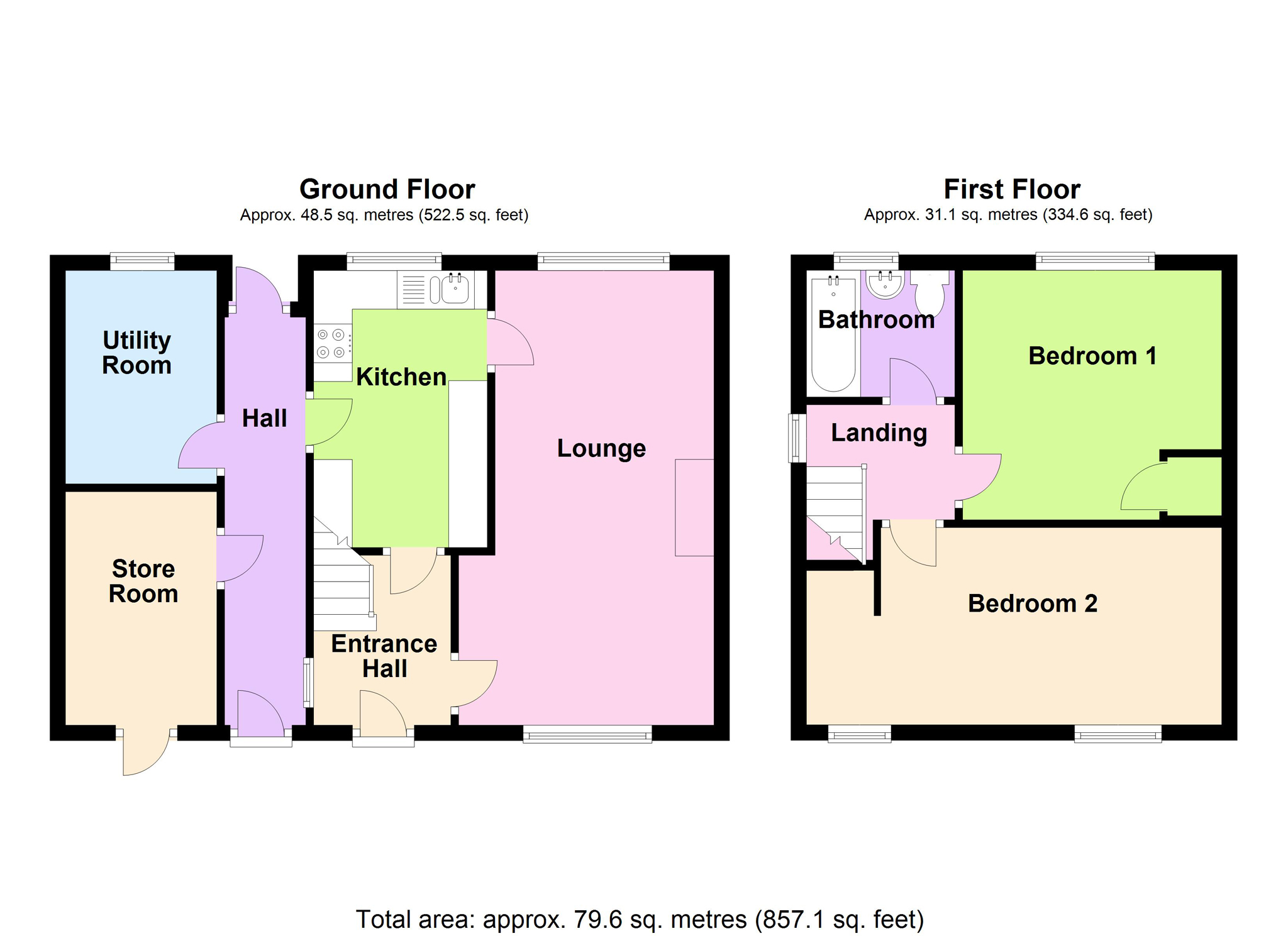 The property briefly comprises of an entrance hall, lounge/diner, kitchen, store room, utility room, landing, bathroom and 2 double bedrooms.